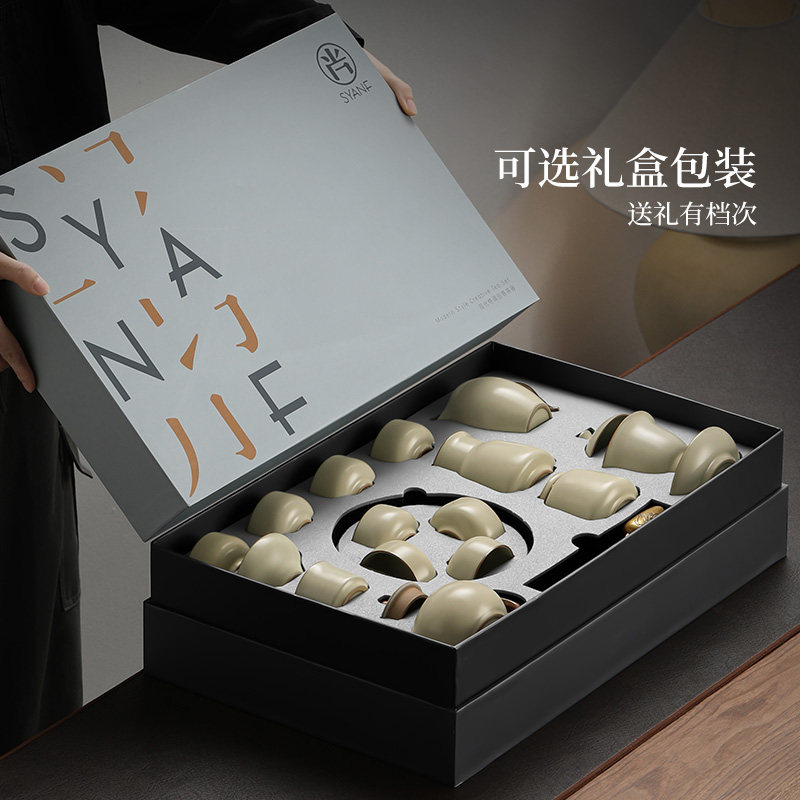 Rice Yellow Ru Kiln Tea Set Suit 2023 New Mid-Autumn Festival Gift Giving Leader Elders Company Practical Gift Tailor-Taobao