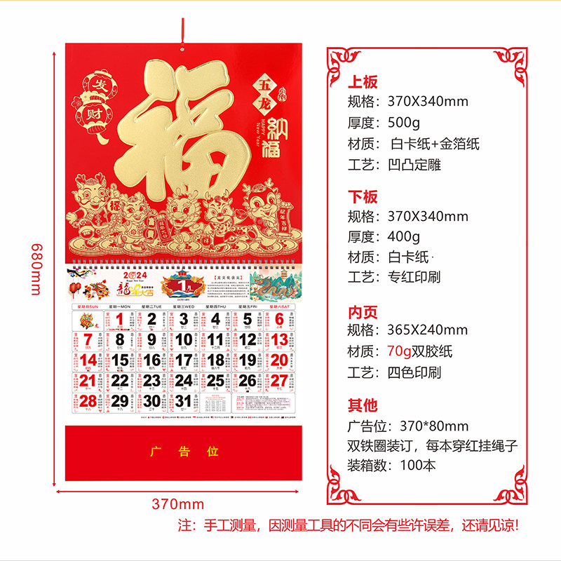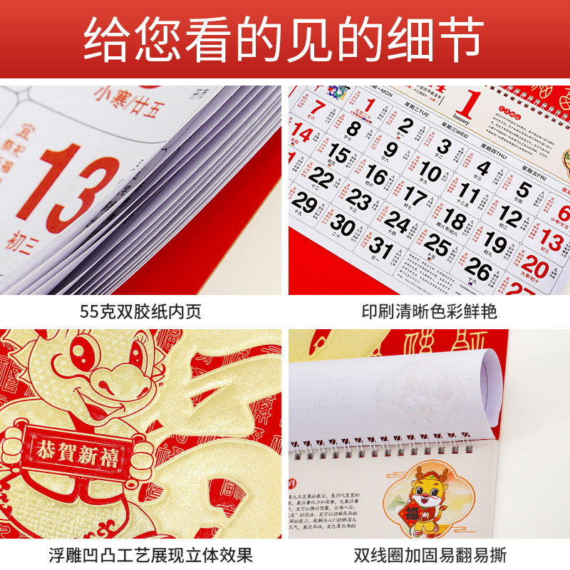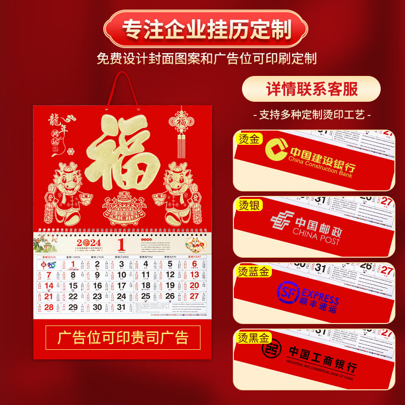 Hang Calendar 2024 Dragon Year Pass Winning Lunar Calendar Custom Ad Fu Character Hanging Card Delivery Customer Gift Bronzing word for special edition-Taobao