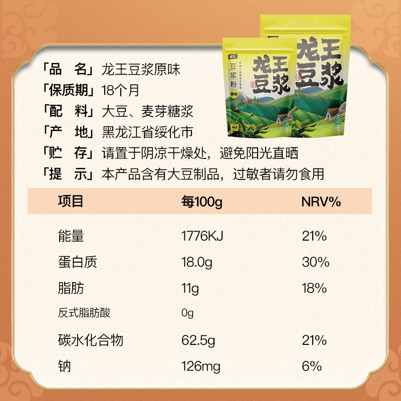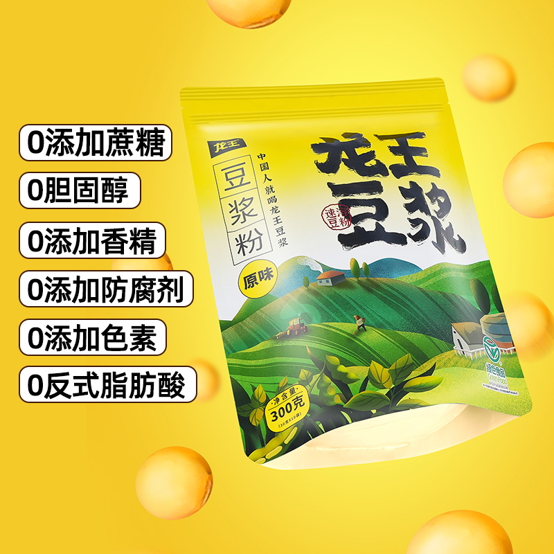 Dragon King National Wind Original Flavor Soy Milk Powder Soy Milk Powder Breakfast Instant Sprint 300g * 3 bags High protein 0 Add cane sugar-Taobao