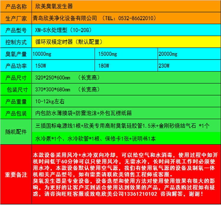 Xinmei XM-S ozone generator 15g water treatment ozone disinfection machine pure water mineral water ozone machine water cooling