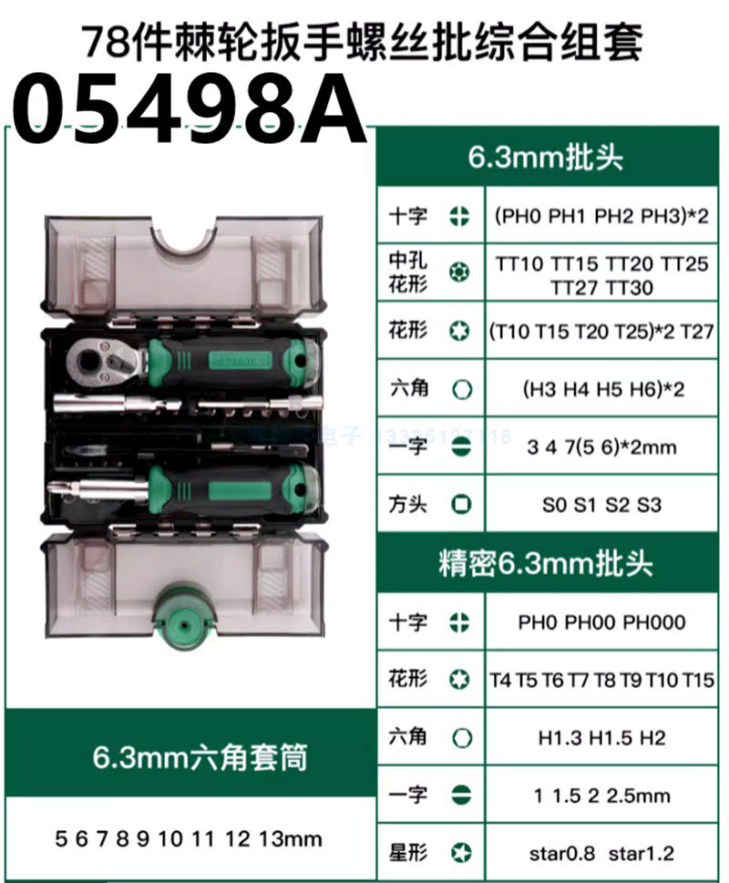 05498A 05498A-78 piece set ratchet screwdriver sleeve set 05498-38-piece set ratchet screwdriver sleeve set 05497 05497-27 piece set mini ratchet sleeve set 0
