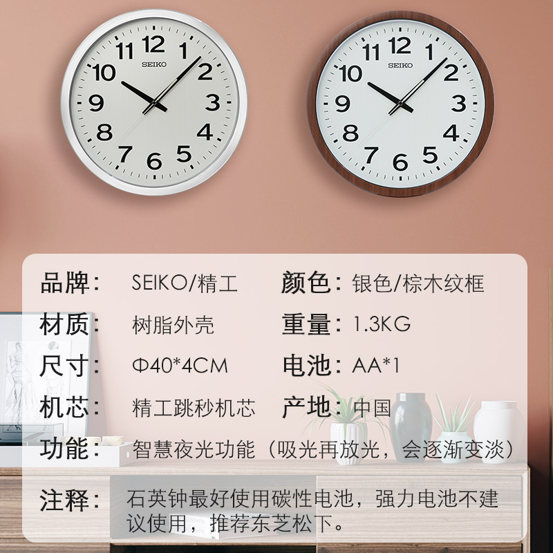 SEIKO Japan Seiko Clock Home Free of punching clocks 16-inch minimalist living-room sweeping seconds NIGHT LIGHT Big Hanging Clocks-Taobao
