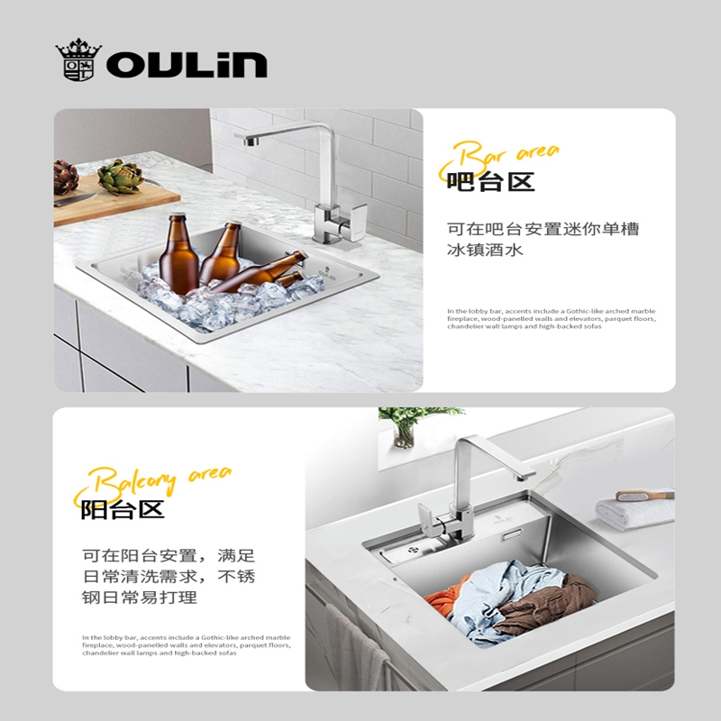 Eileen Sink Handcrafted Single Trough Thickened Stainless Steel Pool Floor Basin Sink Kitchen Sink Kitchen Wash Basin small number bar Terri-Taobao