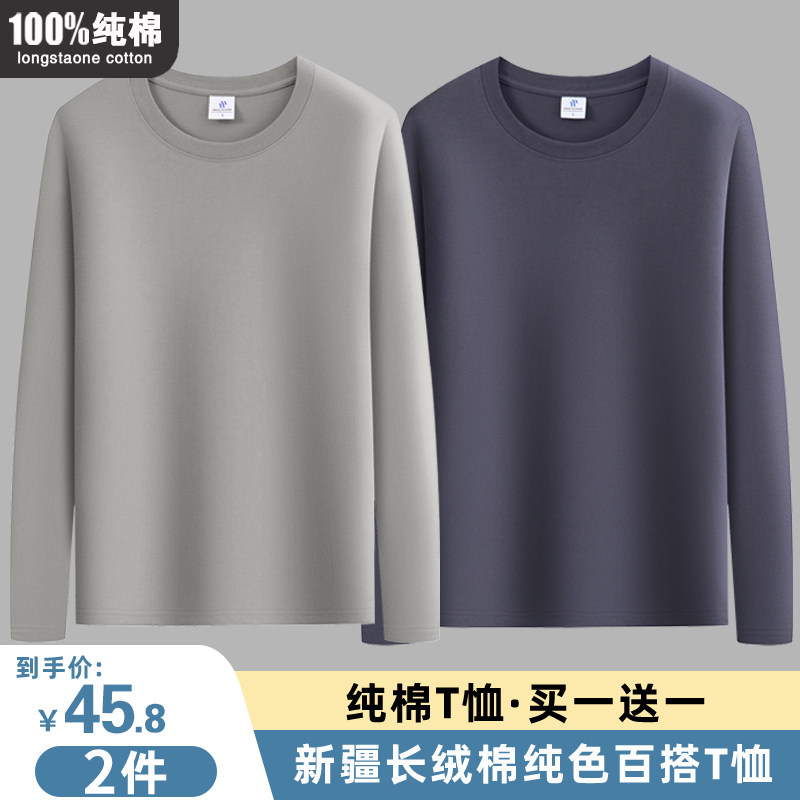 100% New Frontier Cotton Heavy Pound Long Sleeve T-Shirt Male Pure Cotton White Round Collar Inner Hitch Undershirt Spring Autumn Loose Sweatshirt Man-Taobao