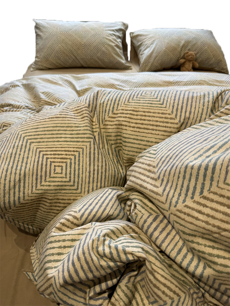 Nordic minimalist metropolitan Lingge autumn winter thickened grinding of four sets of full cotton 1 5m1 8 m quilt cover sheet warm-Taobao