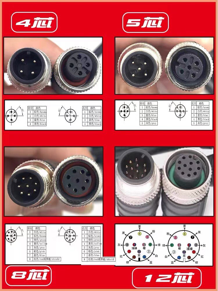 Straight head 4 core male head 4 core female head elbow 4 core male head elbow 4 core female head straight head 5 core male head straight head 5 core female head elbow 5 core male head elbow 5 core female head straight head 8 core male head straight head 8 core female head