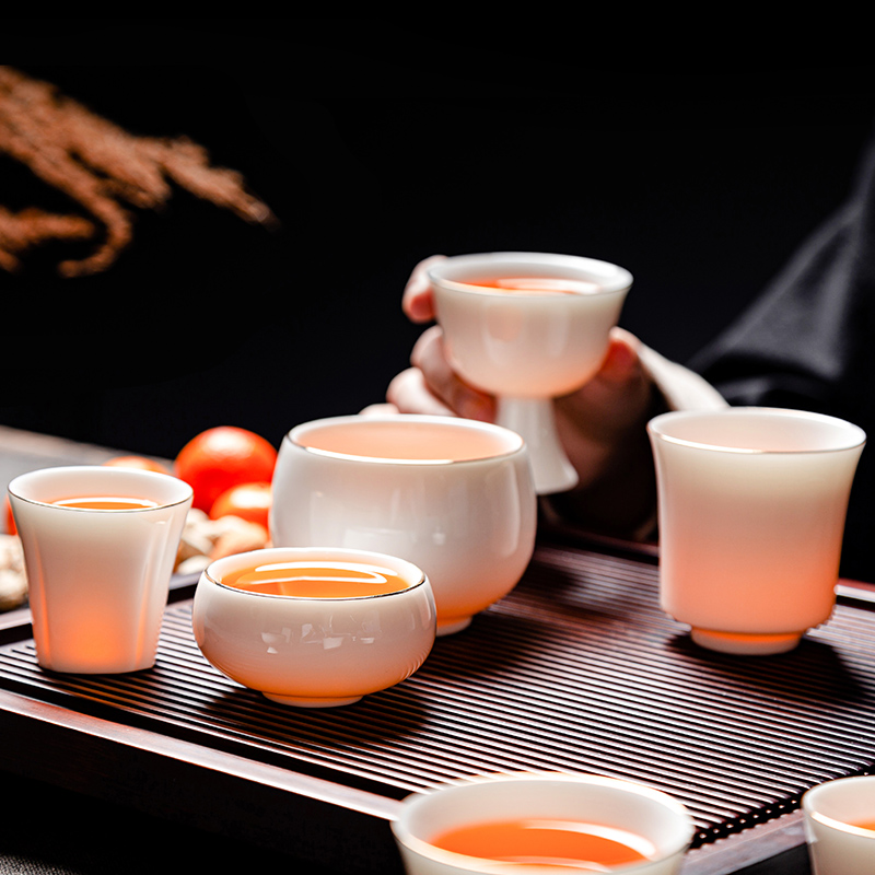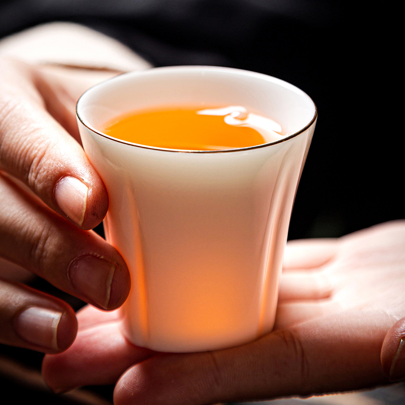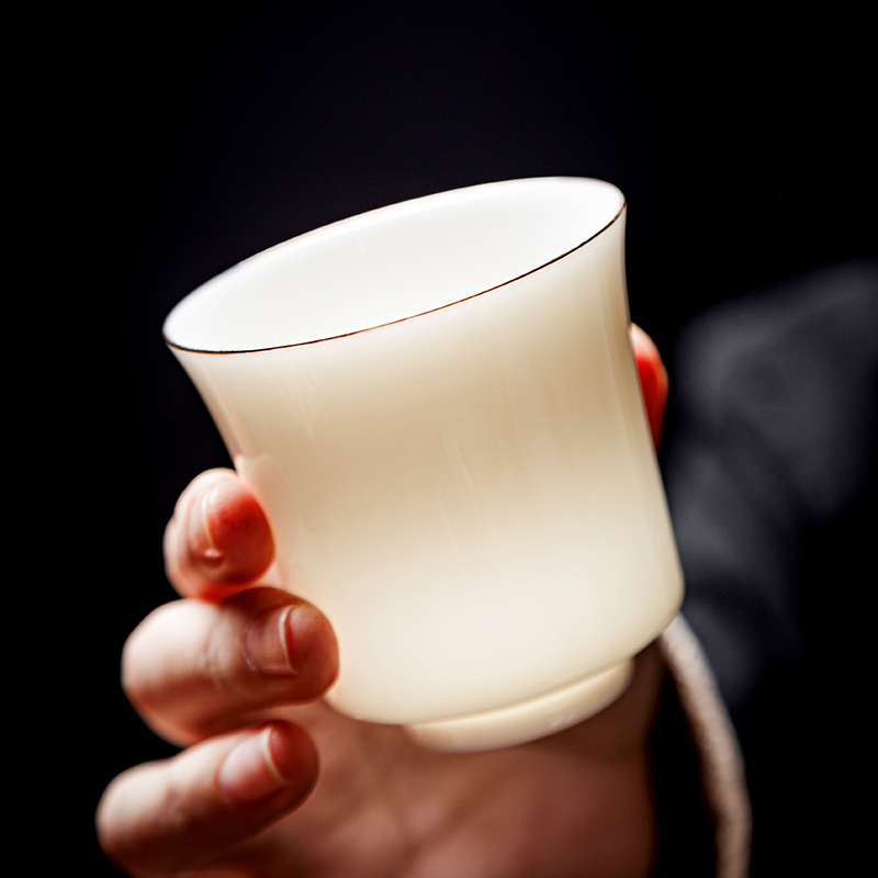 High-end Tea Cup Sketching Sheep Fat Jade White Porcelain Master's Cup Home Tasting Cup Single Cup Ceramic Tea Exclusive Personal Cup-Taobao