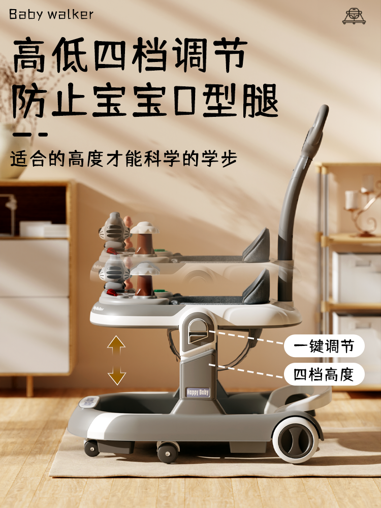 School walker anti-type leg multifunction 2023 new baby hand-push enabler baby learn walking anti-side turning-Taobao