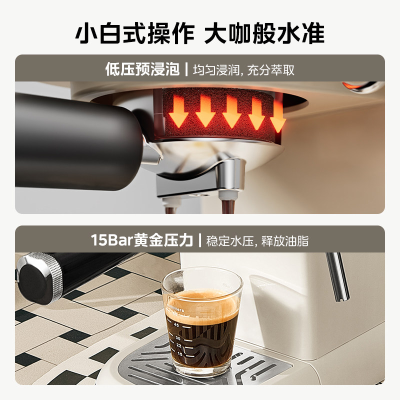 Beauty Espresso Coffee Maker Home Small Full Semiautomatic Mini Espresso American Integrated Milk Bubble Machine-Taobao