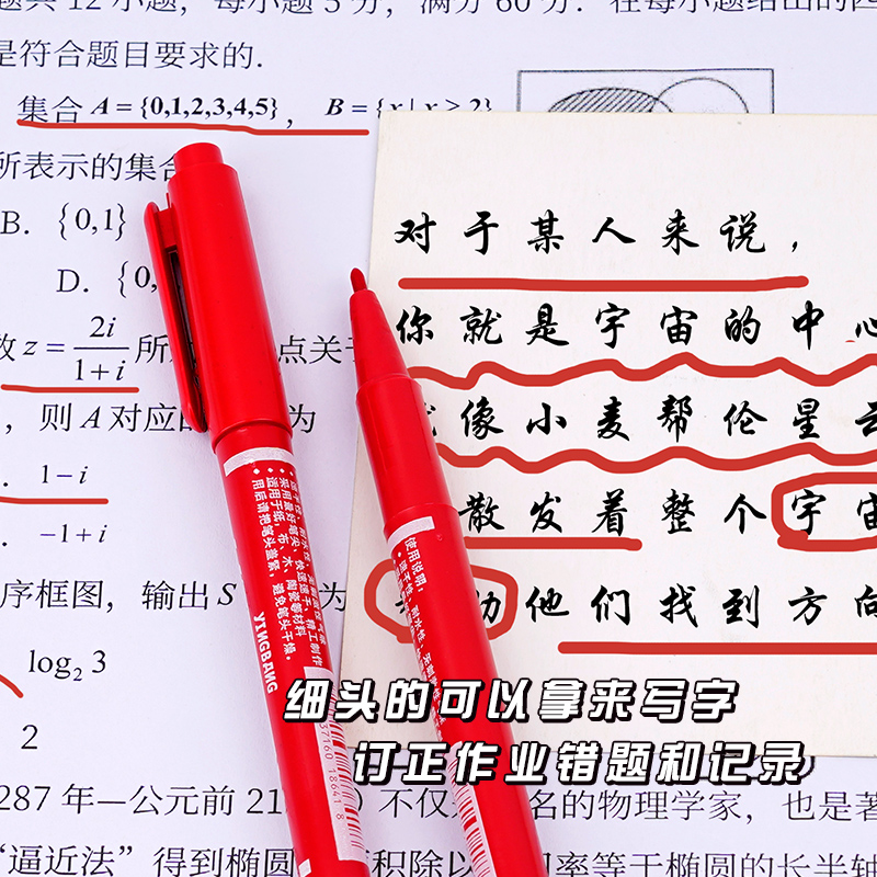 Wu Zhu Ping Substitute Double Head Batch Red Pen Red Note Pen Mark Coarse pen Little Red Book of the same paragraph Han Department Soft Head Pen Student Party Painting Matter Research Musicao key Inwind Colorful Pen-Taobao