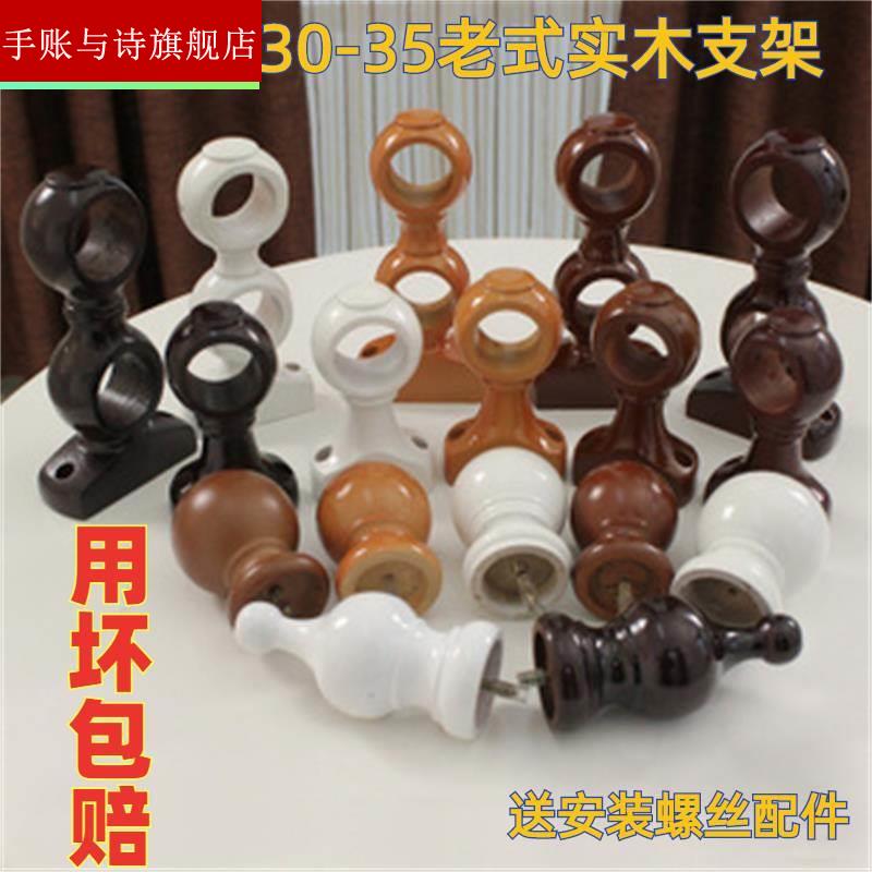 Old solid wood window curtain rod bracket Roman rod 35 accessories single double base side top fit double yard fixed support bay-Taobao