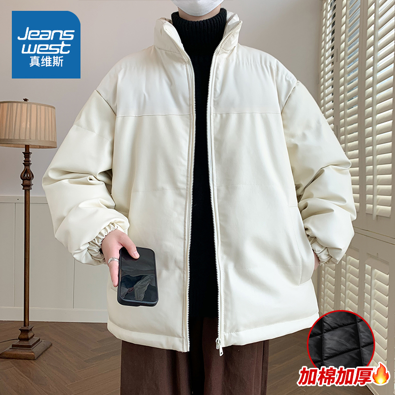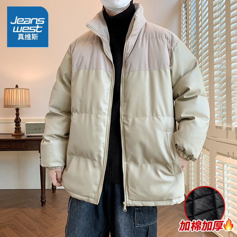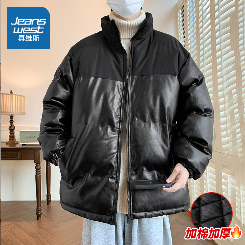 Real Vis Cotton Clothes Men Winter 2023 New Thickened PU Leather Cotton Padded Jacket Men Casual Sports Winter Cotton Clothing-Taobao
