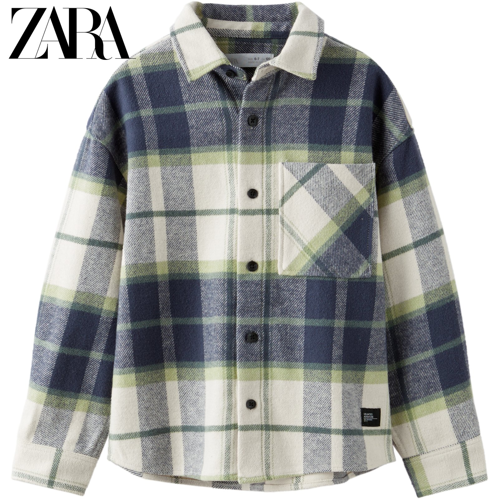 ZARA 2023 Fall New Pint Boy Clothing Boy Plaid Shirt Jacket 3183541400-Taobao