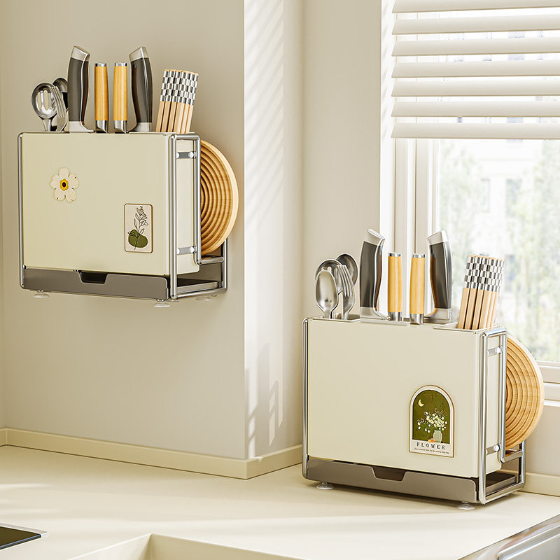 Handsome new kitchen knife holder Multi-functional magnetic suction kitchen knife chopstick chopping frame integrated cutter containing frame-Taobao