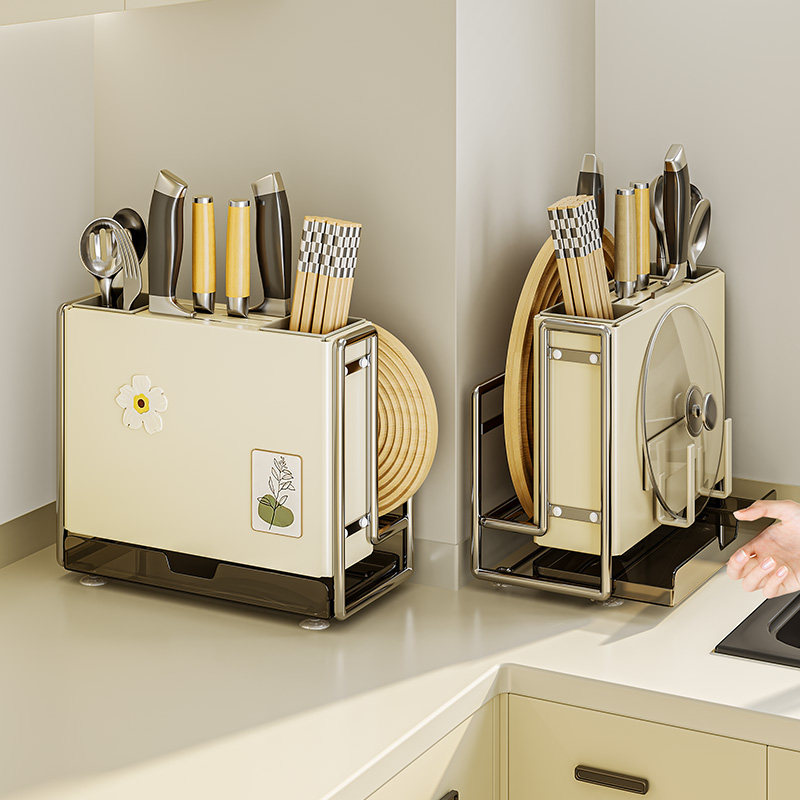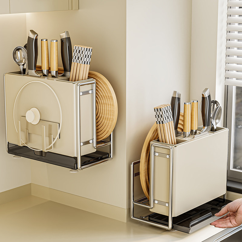 Knife holder lid rack (cream white) table-top wall-mounted dual-use knife holder lid rack (cream white) countertop shelf (cream white) table top shelf (cream white) table top shelf (cream white) table top