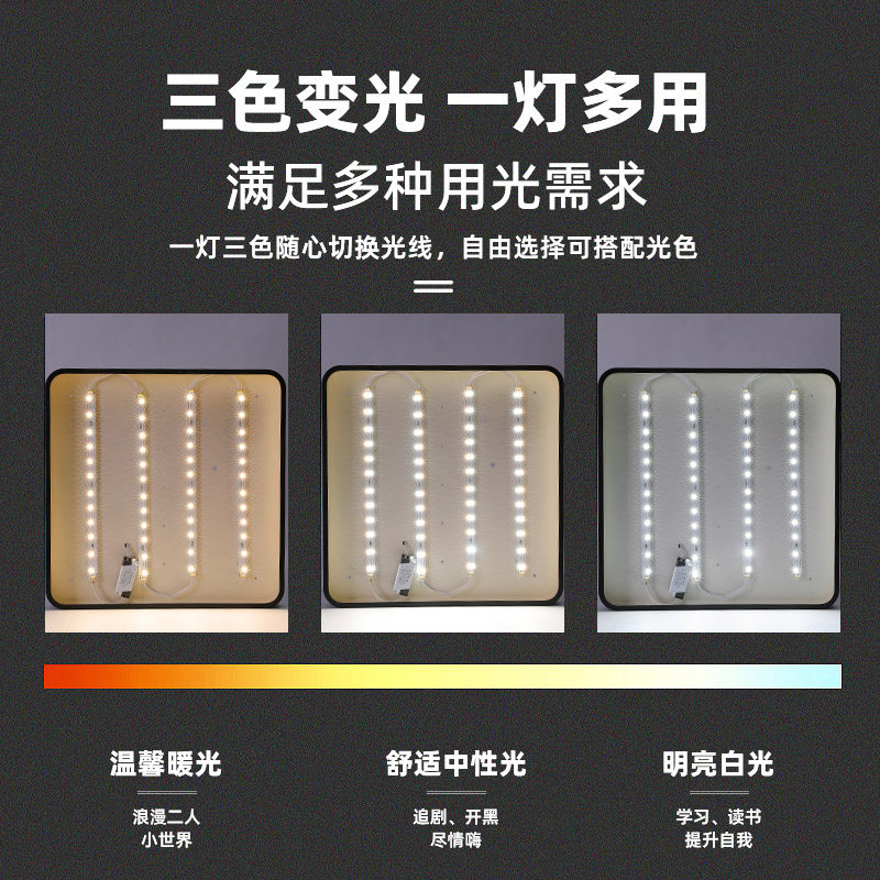 Energy saving led suction lamp long light strip wick replacement light plate Three-colour light changing living-room ultra-bright light with lamp bead patch-Taobao