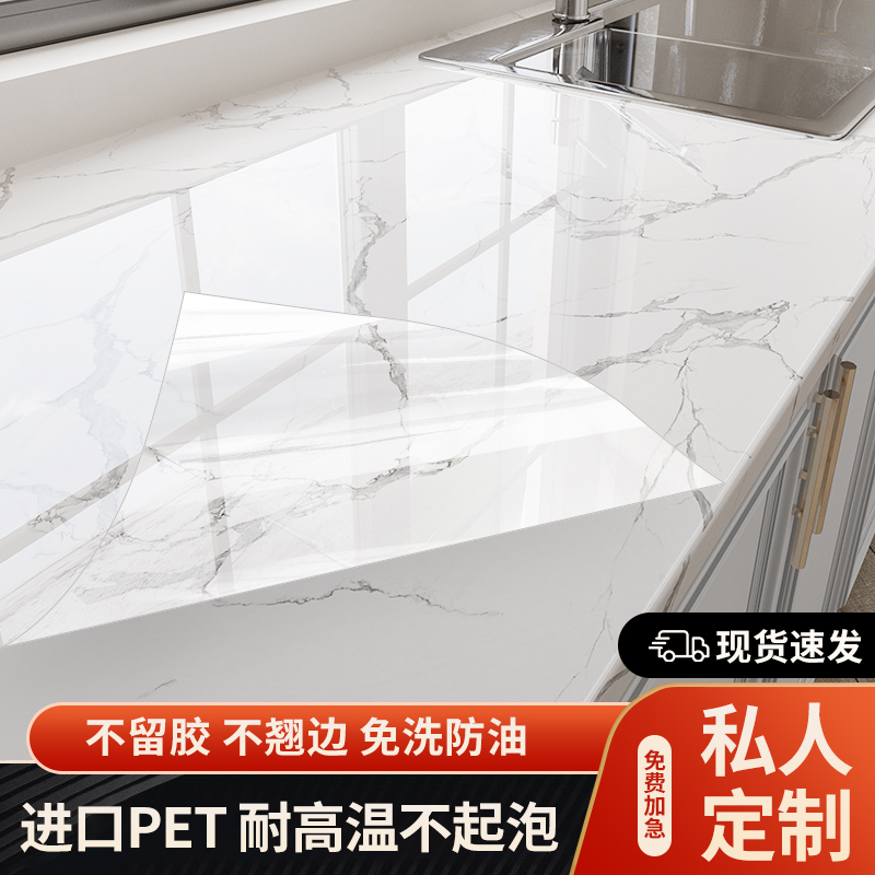 Kitchen countertop adhesive film sticker cupboard hearth quartz stone furniture high temperature resistant desktop waterproof and anti-grease adhesive film-Taobao