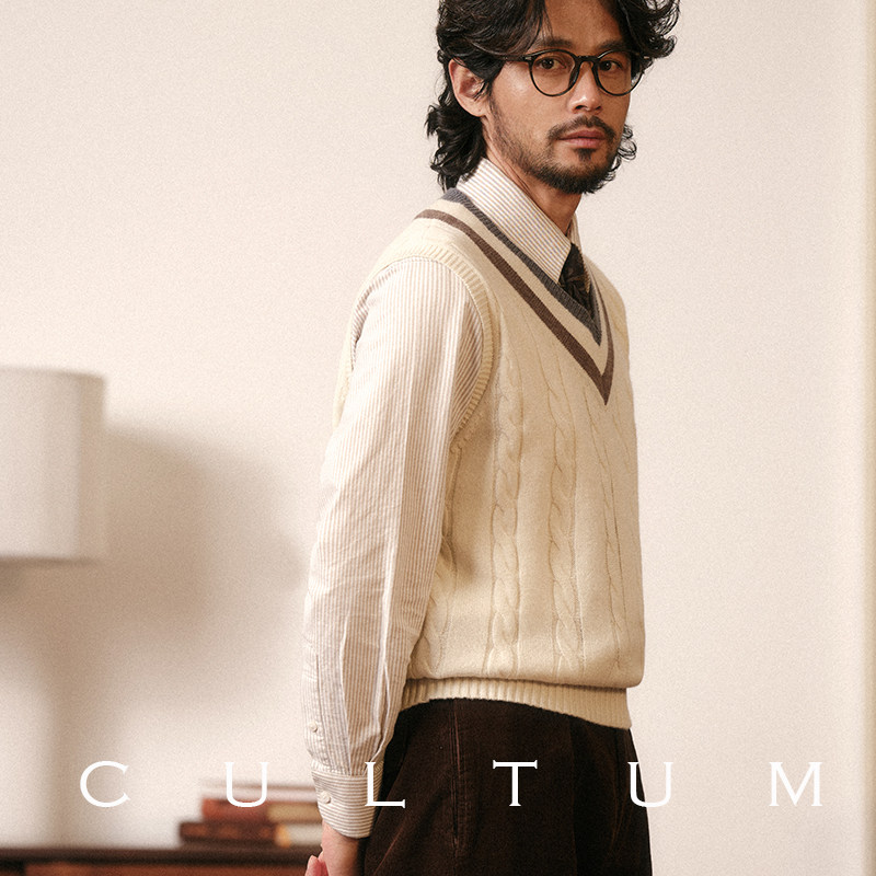 CULTUM Beautiful Nowool knit sleeveless vest laminated wearing new waistcoat male retro Inn College Wind sweater-Taobao