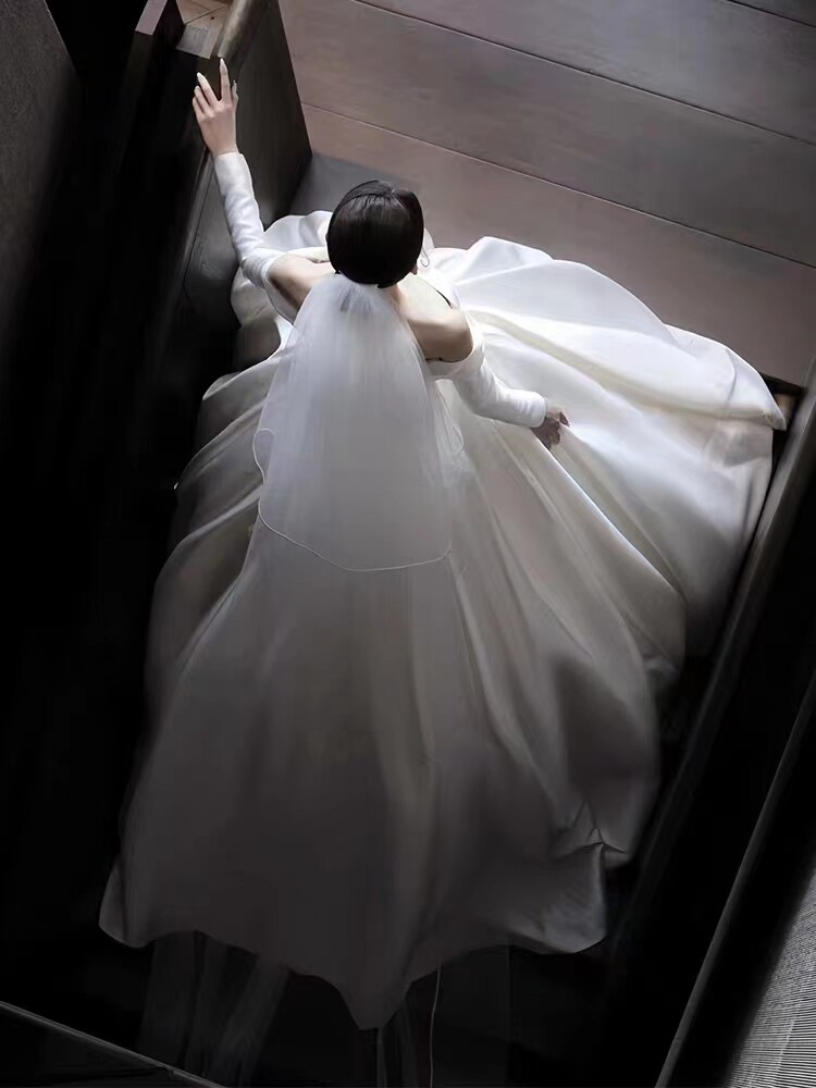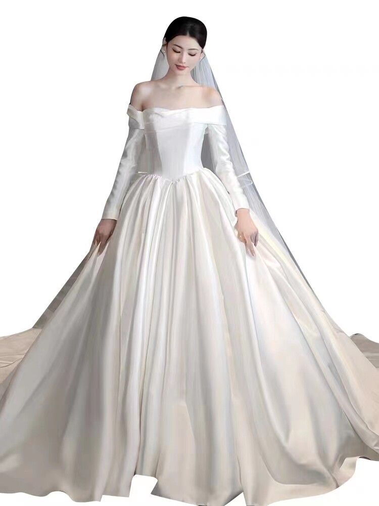 Straight Shoulder Wedding Veil Main Yarn Bride 2023 New Advanced Texture Retro Gown Out Satin Light Wedding Dresses Winter-Taobao