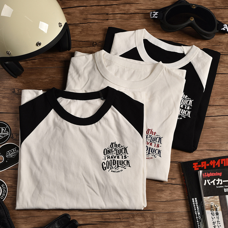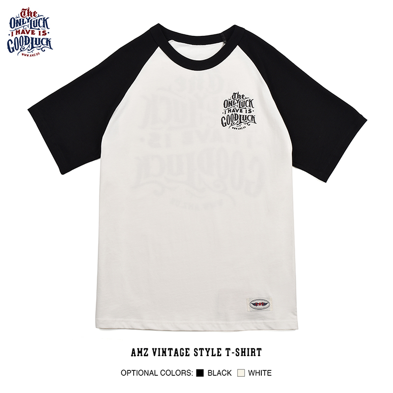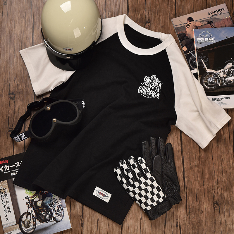 AMZ Short Sleeve Men's Retro Printed Full Cotton Summer Loose Riding t Round Collar Sports Locomotive Boys' Blouses-Taobao