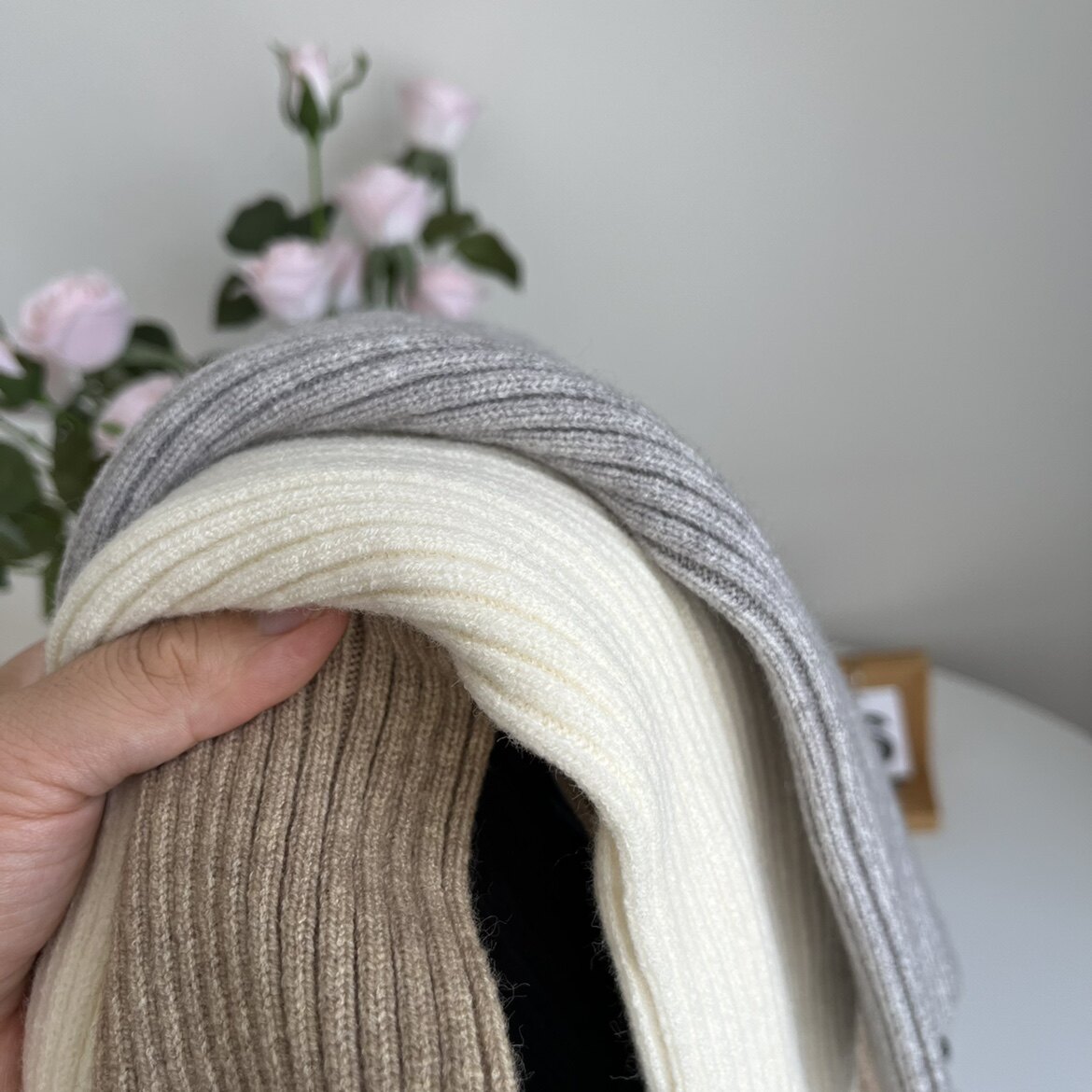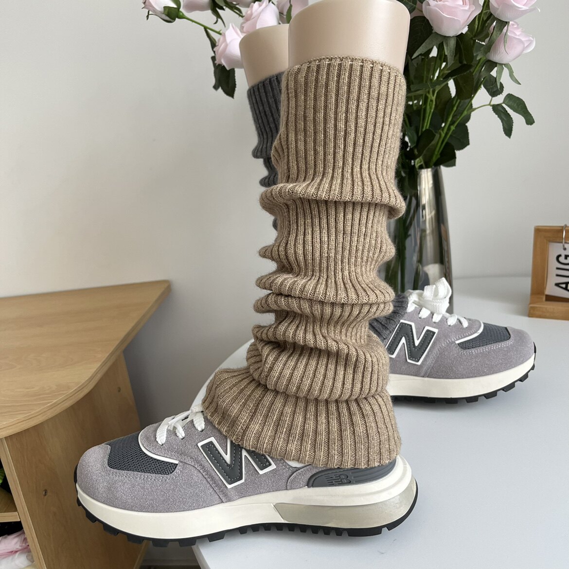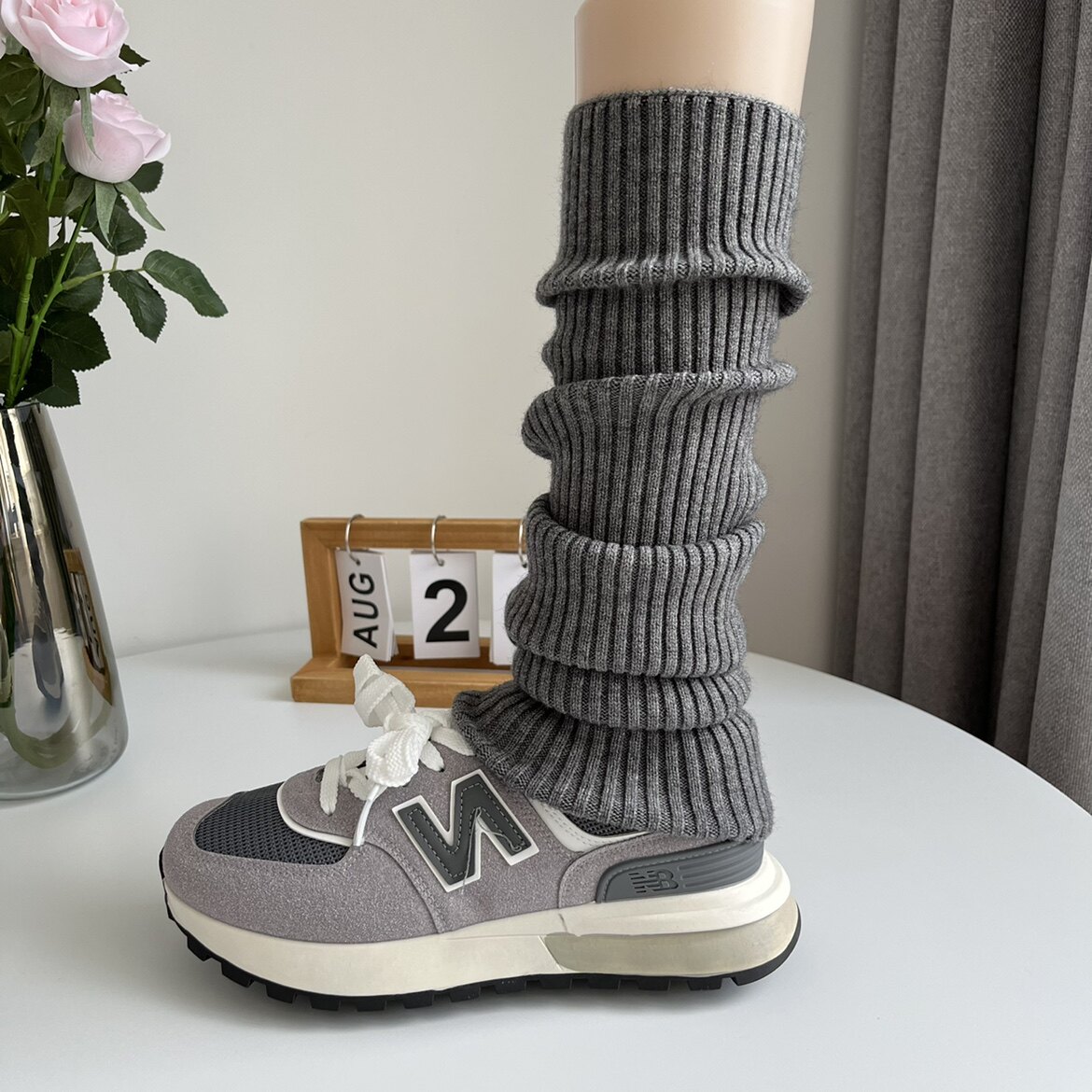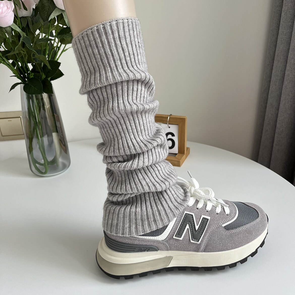 50cm days Milk White Cashmere Socks Jacket Woman Autumn Winter Retro lazy stacked knitted smoke grey calf sock-sock-Taobao