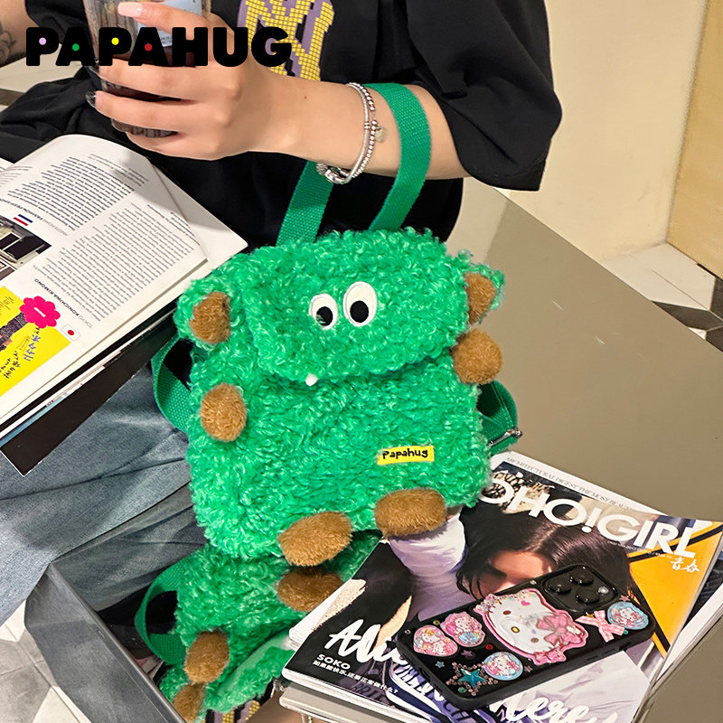 PAPAHUG small monster plush bag obliquely satchel with zero wallet adorable wearing a small crowd design sensation Leisure single shoulder hanging bag-Taobao