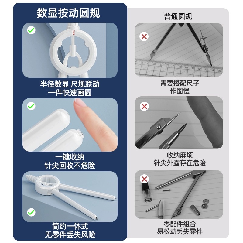 Black tech number of press compasses elementary school students 6th grade special junior high school students' ruler compasses suit high face value protractor with scale drawing triangular ruler suit exam pen style as picture ruler-Taobao