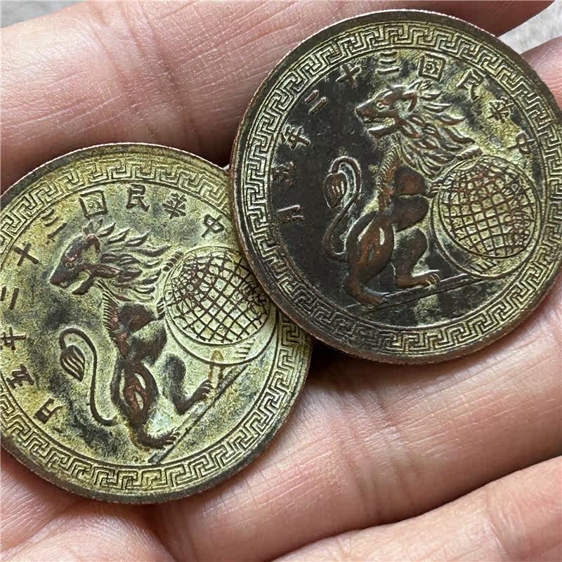 Antique bronze instrumental craftsmanship fine copper coin copper-copper-plate lion cucoin with a single price appreciation collection Jiao-Taobao