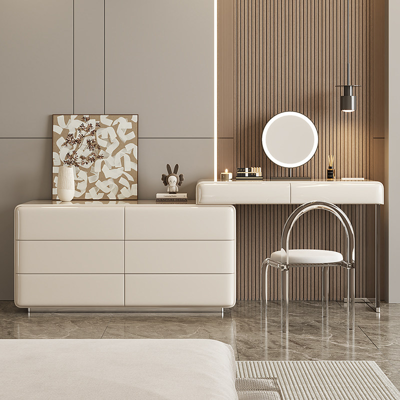 Main Sleeper Solid Wood Makeup Table Containing Cabinet Bed Tail Bucket Cabinet Dresser Incorporate Desk Bedroom Brief Modern Cream Wind-Taobao