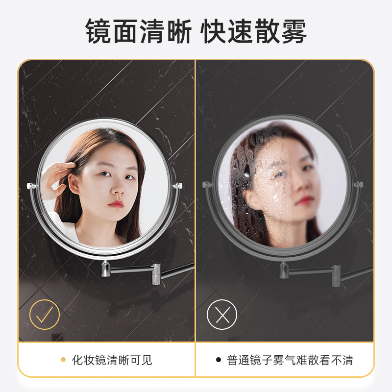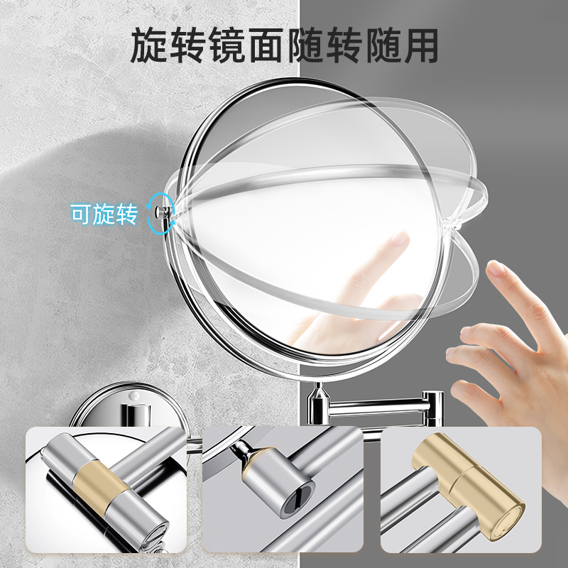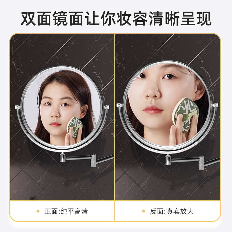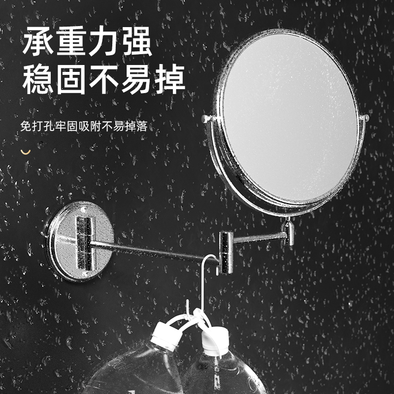 Bathroom Makeup Mirror Wall-mounted Folding Telescopic Free Punching Hotel Toilet Sticker Wall Bifacial Dresser magnifying glass-Taobao