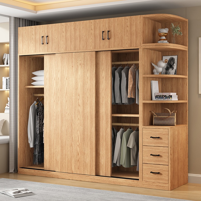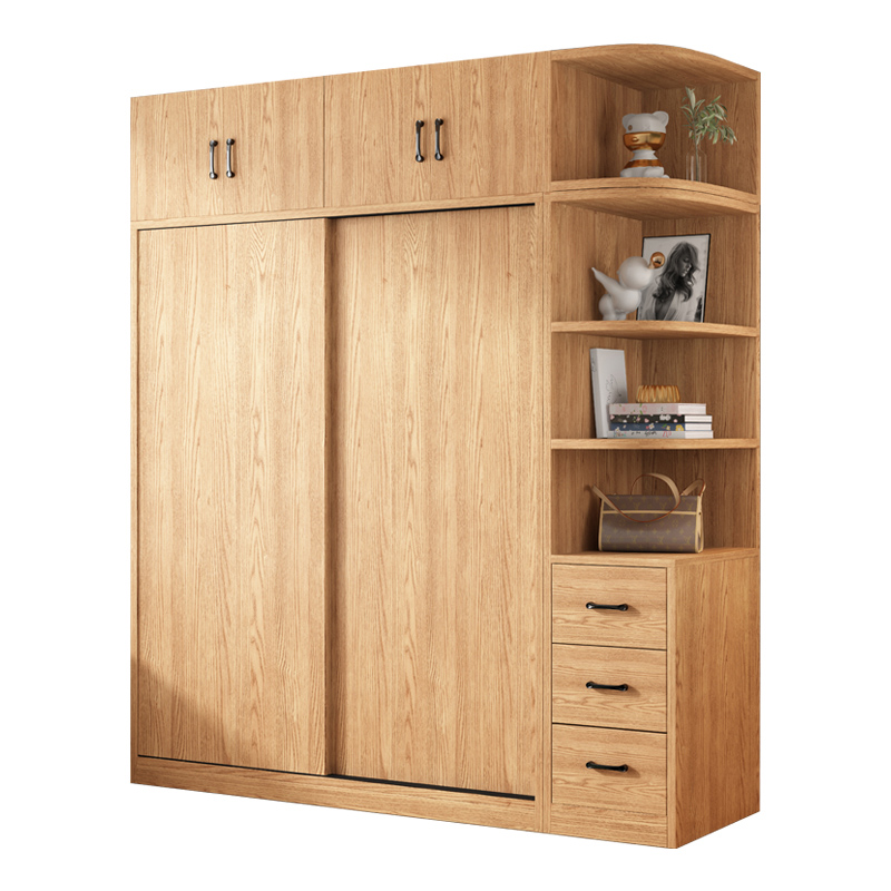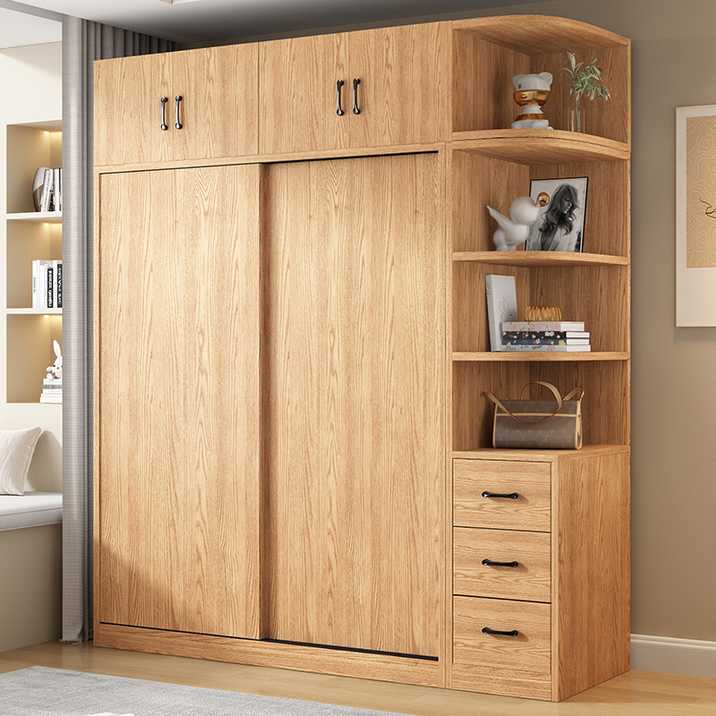 Wardrobe Home Bedroom Push-and-door Solid Wood Closet Log Small Family Type Moving Door Containing Cabinet Rental Room Children Cupboard-Taobao