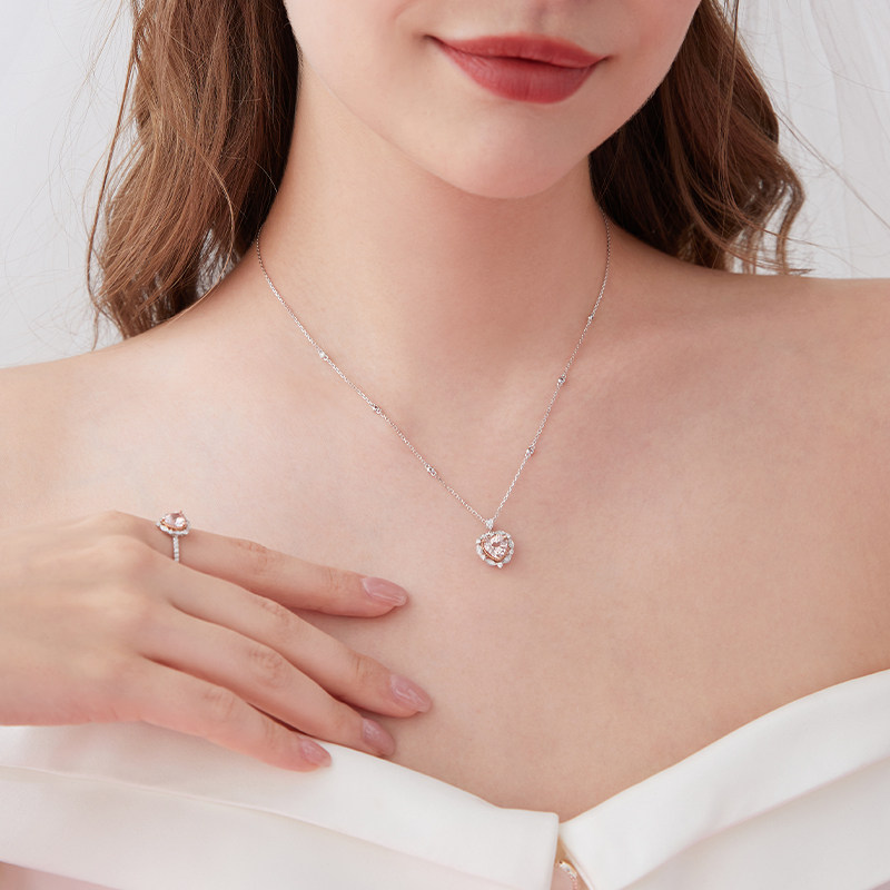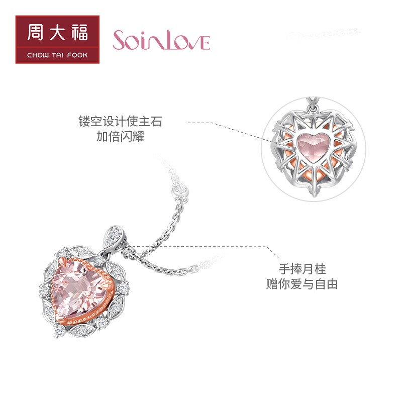 New week Dafu SOINLOVE "heart love" laurel heart 18K gold Morgan stone diamond necklace woman VV235 -Taobao
