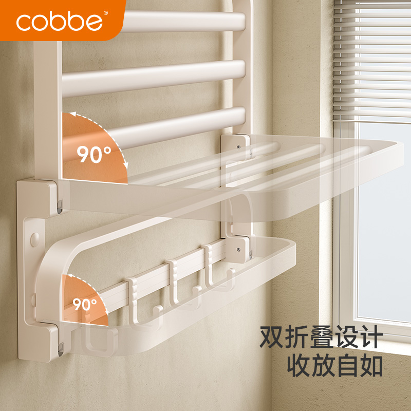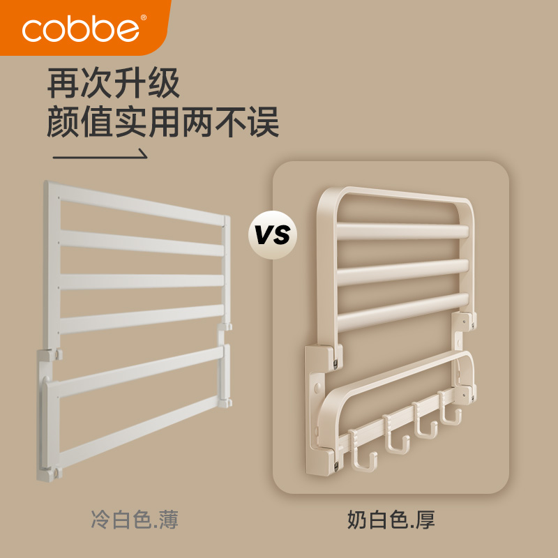 Cabbé Towel Rack Free From Punching Toilet Cream Wind Bathroom Bath Towels Shelve Bathroom White Pendant Suit-Taobao
