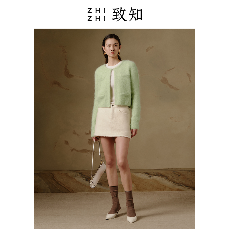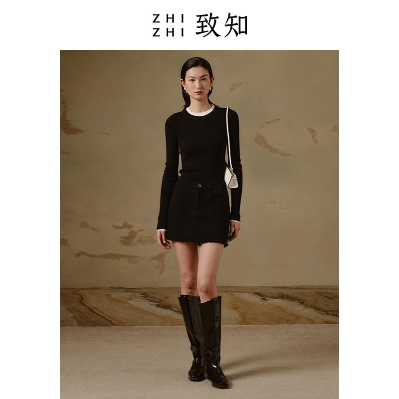 To Know ZHIZHI with Horse Lines Small A Words Short Skirt Woman 2023 Winter New Denim Tailoring White-Taobao