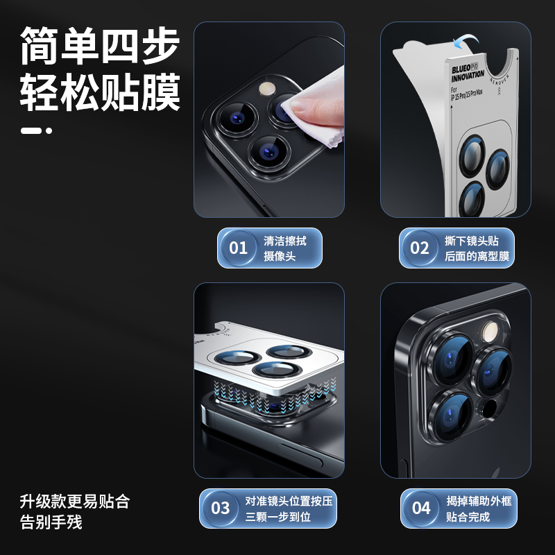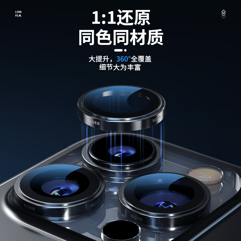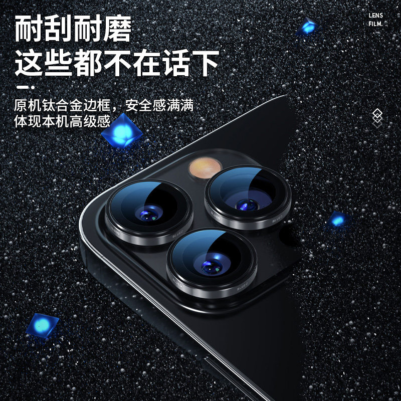 (Ali's official self-proprietary) Blue Scarlet lens film suitable for Apple 15Promax iPhone15Pro Conning titanium alloy mobile phone camera pvd original machine protective film full-pack-T