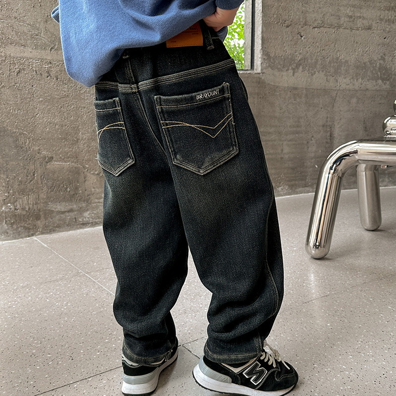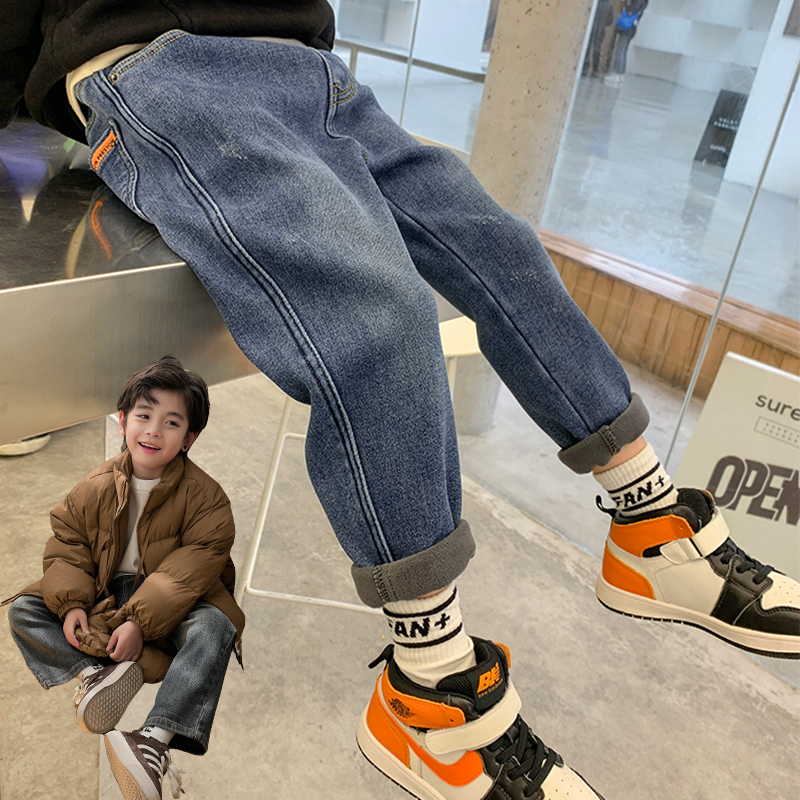 Boy jeans plus suede pants autumn winter 2023 new winter child clothes children Integrated Suede Boy Thickened Winter Dress-Taobao