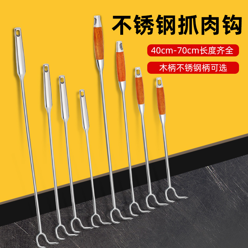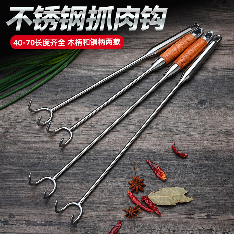 Stainless Steel Meat Hook For Meat Long Rod Hook Grip Meat Hook For Meat Cooked Food Hook Fried Brine Hook Pork Special Tool-Taobao