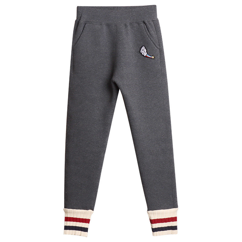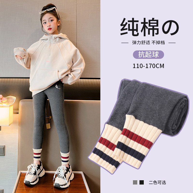 Girl Beats Bottom Pants Plus Suede Thickened Autumn/Winter Outwear Children Grey Pure Cotton Pants Big Boy Winter Clothing Warm Skintight Pants-Taobao
