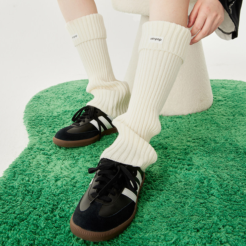 Wool Socks Jacket) Upper Sens White Leggings Slim Flip Side 100 Lap Heaps Heaps Heaps Heaps Women Autumn Winter Socks Pure Color Long Socks-Taobao