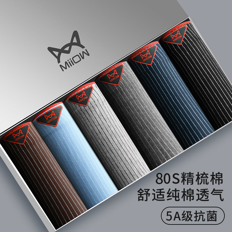 Cat man pure cotton men's underwear breathable antibacterial crotch Four corner boys with underpants underpants Loose Big Code Flat Corner Shorts head-Taobao
