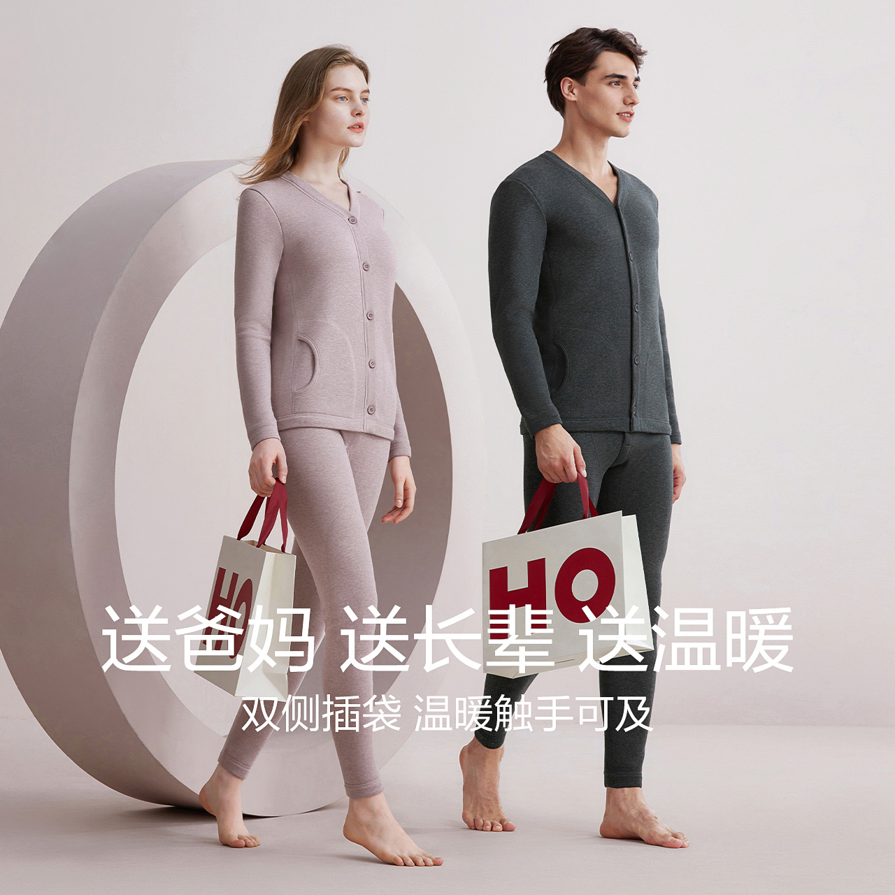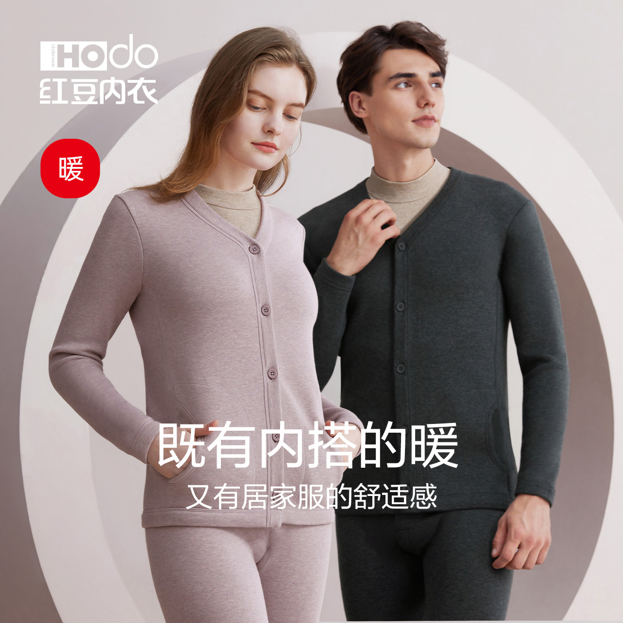 Red Beans Plus Suede Thickened Warm Underwear Cardiff for the elderly men and women's mom and dad's kneecap winter can be worn out of suit-Taobao