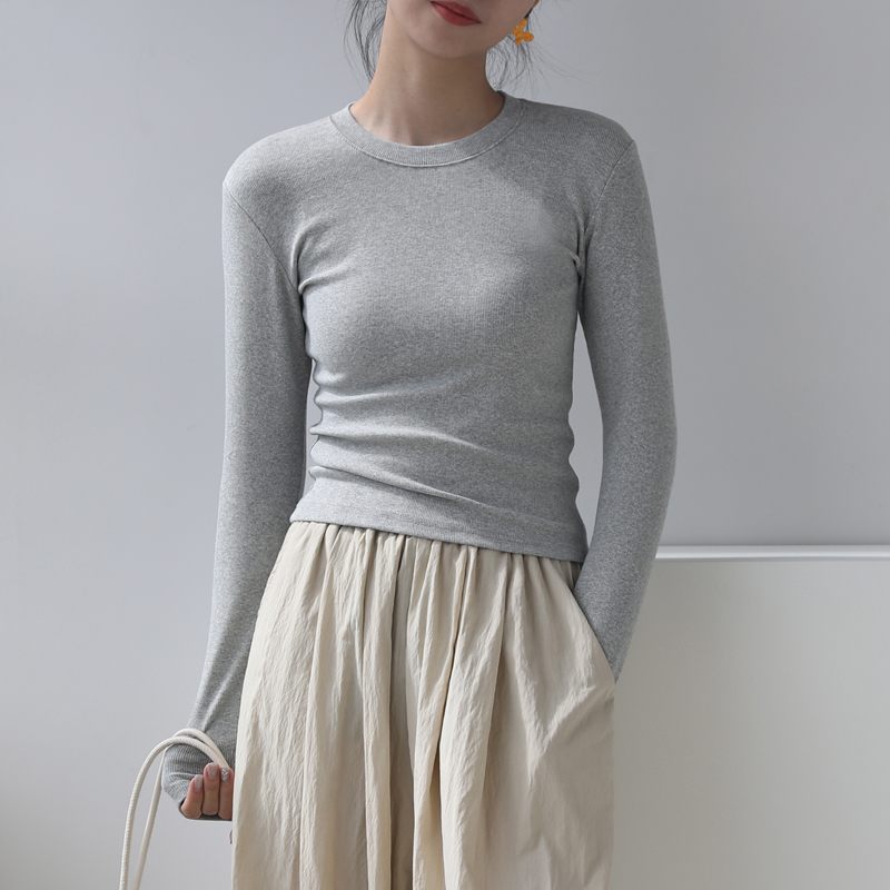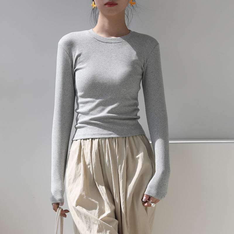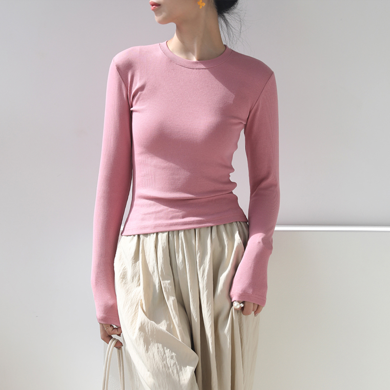 Pure cotton long sleeve t-shirt woman round collar bottom-shirt 100 hitch up to thin pink white foreign air inside lap blouse-Taobao