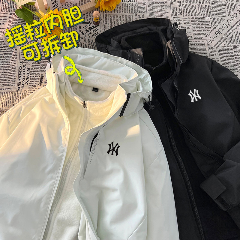 NY official outdoor submachine clothing male and female three-in-one detachable windproof waterproof jacket tide jacket lovers mountaineering suit-Taobao