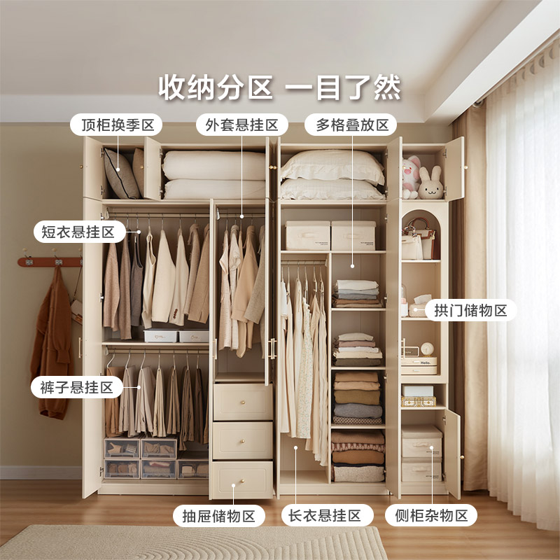 Lin's Home Small Household Type Wardrobe Home Bedroom Cream Windcloset Rental House New 2023 Burst TE1D-Taobao