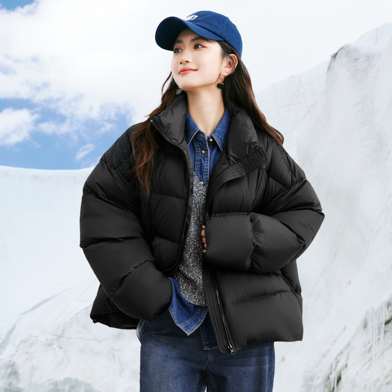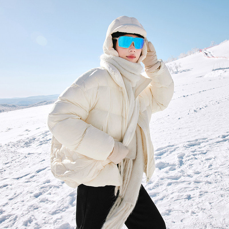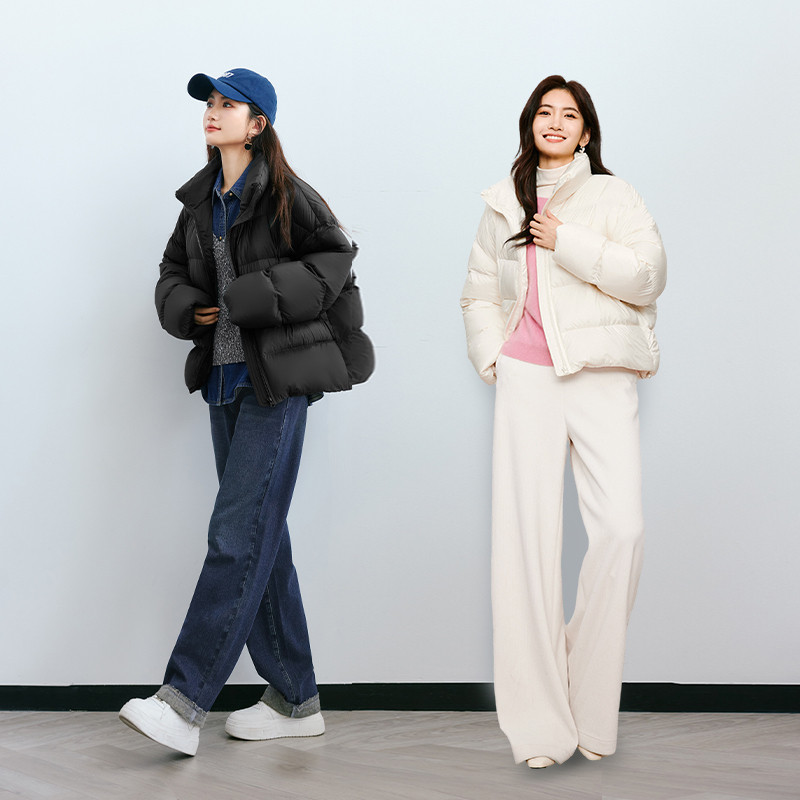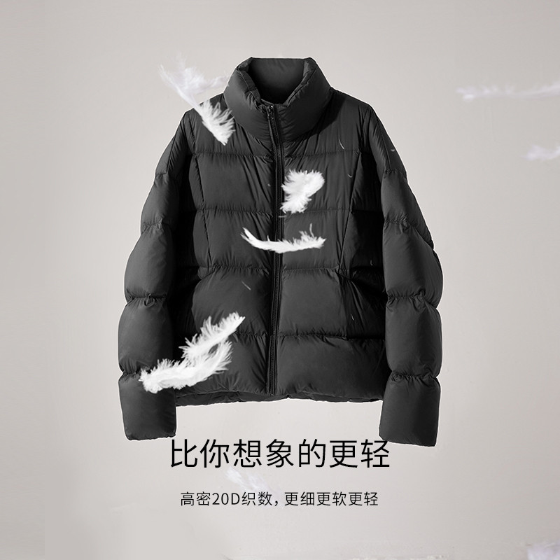 Ive Libra cut line upright collar short and not bloated white duck suede down clothes woman 2023 winter dress new bread suit-Taobao