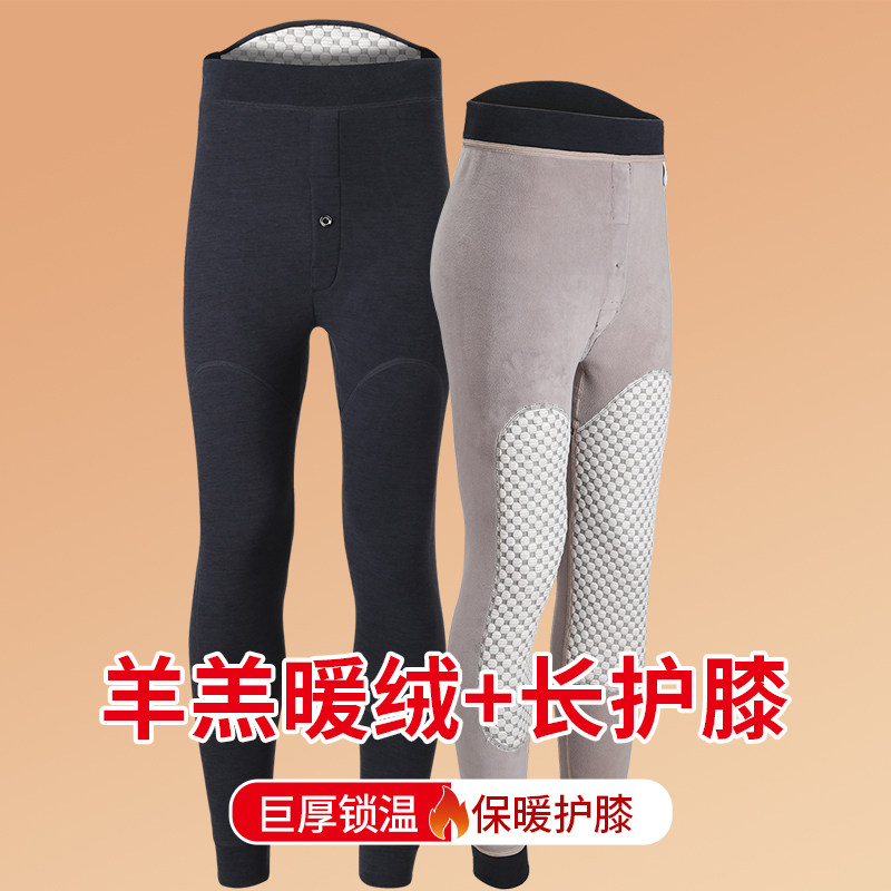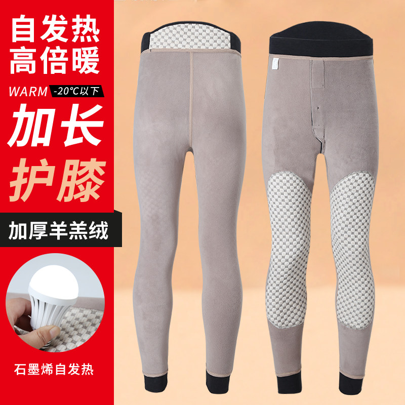 Men's winter warm pants plus suede thickened graphene fever kneecap wool underpants Autumn pants with underpants cotton pants down pants-Taobao
