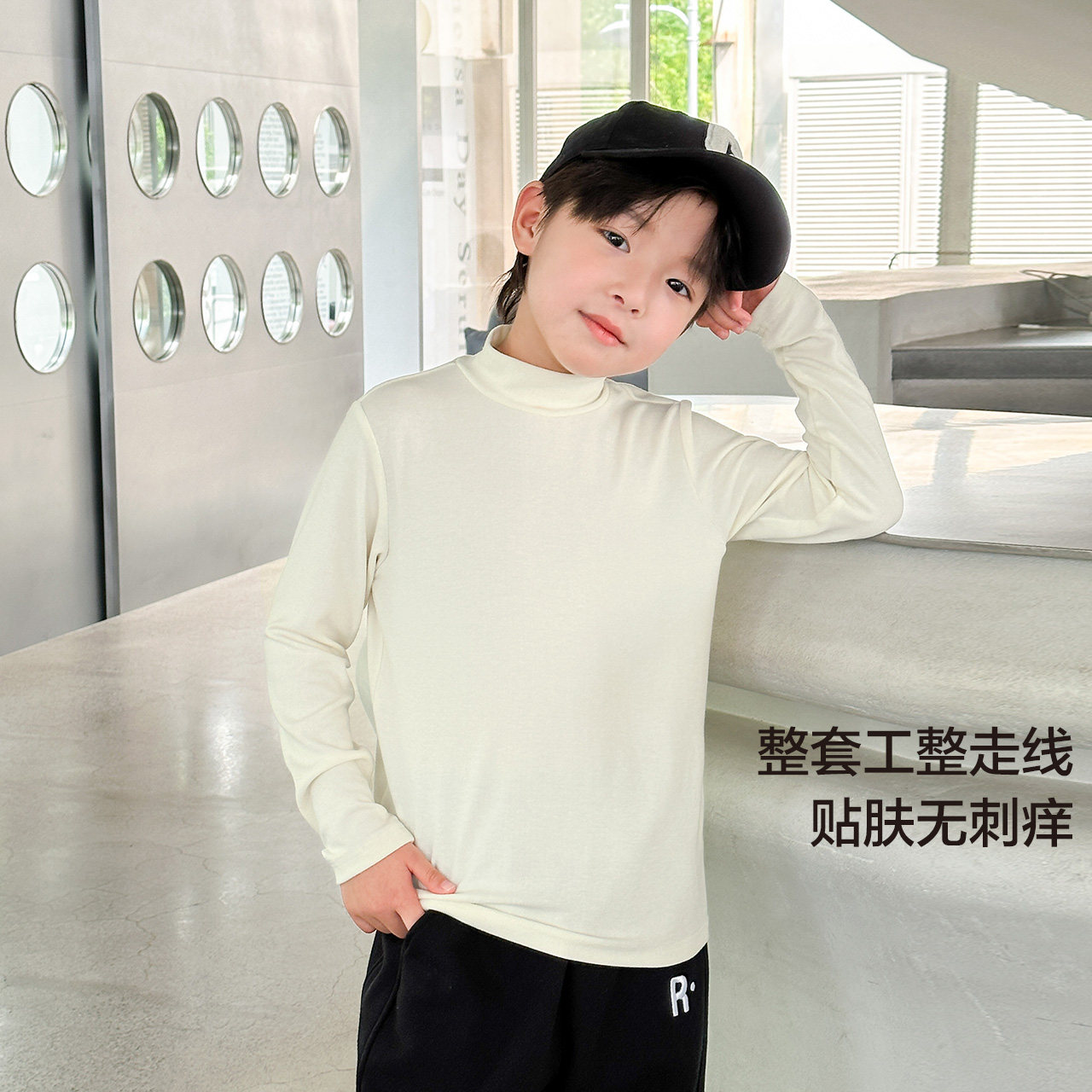 Left West Boy Clothing Boy Beaten Undershirt Dresbacteriostatic 5A Children semi-high collar Long sleeves T-shirt 2023 New autumn and winter money-Taobao