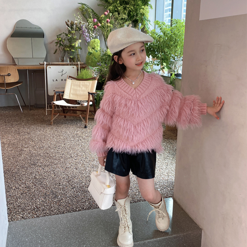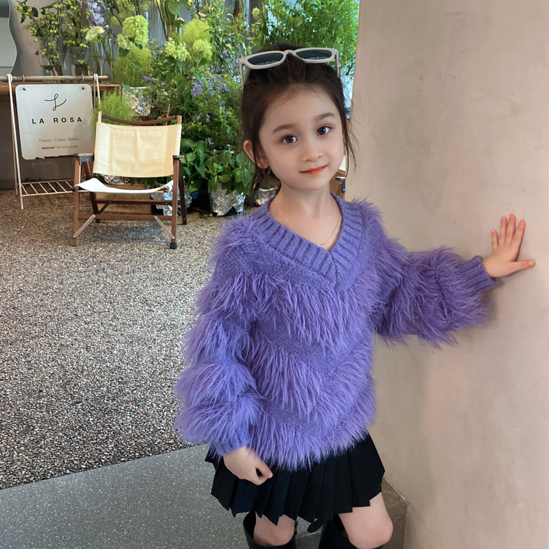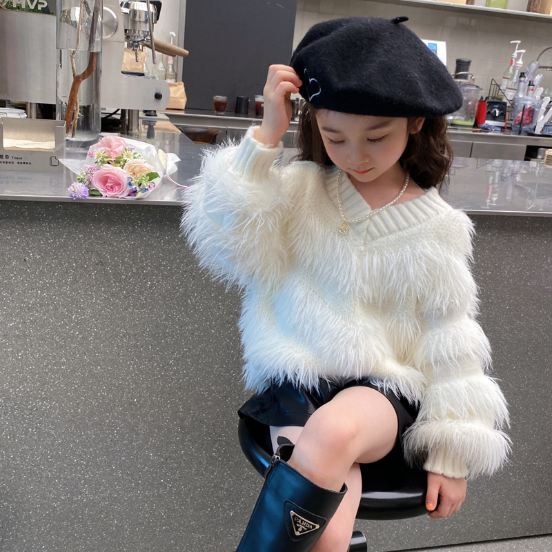 Girl sweater jacket head 2023 new ocean gas autumn and winter style CUHK children's white water mink fleece children's blouse blouses-Taobao