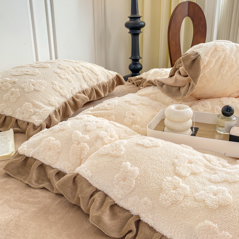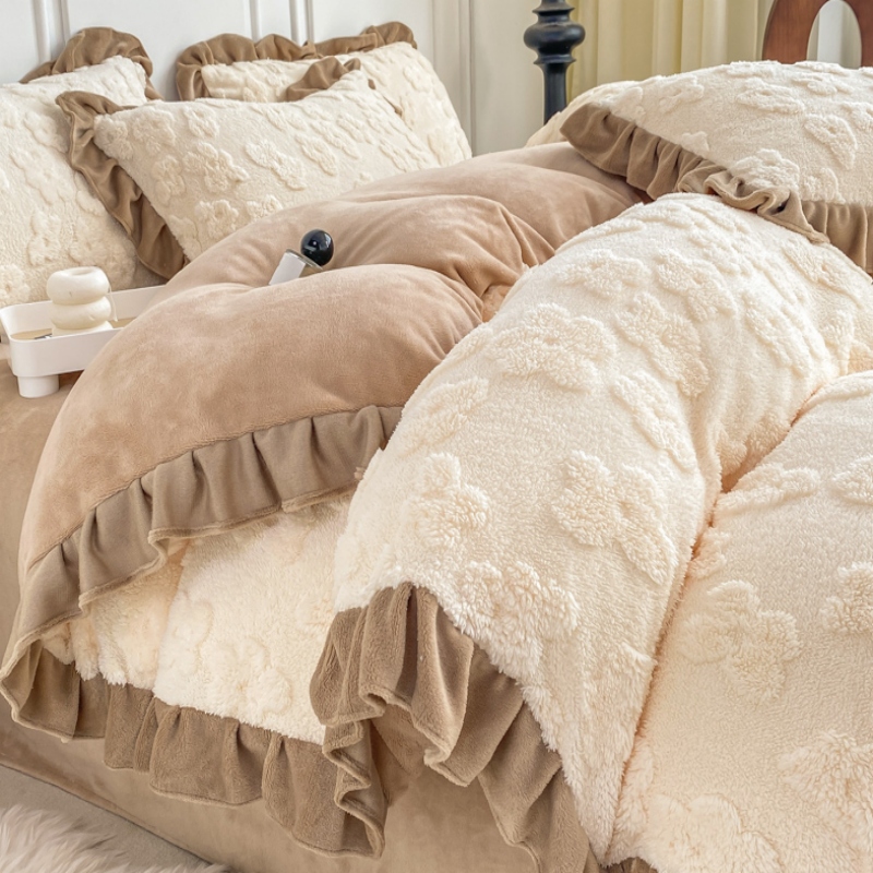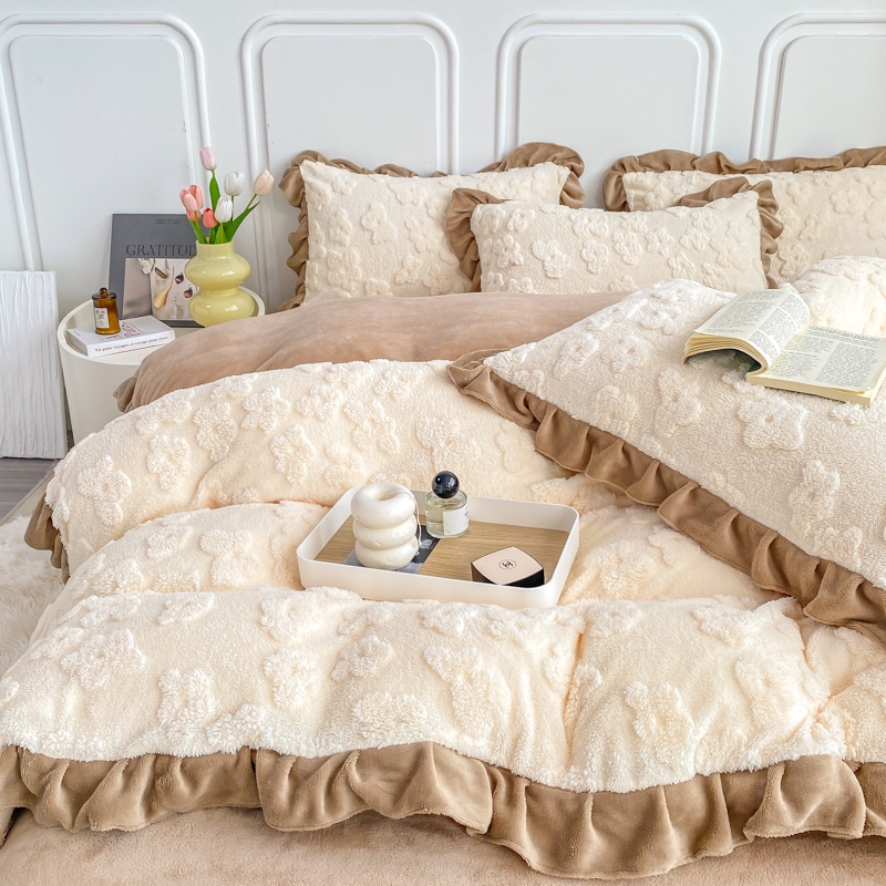 Winter Style Thickened Tave Milk Suede Bed Four Pieces Double Face Suede Coral Suede Quilt Cover Flannel Sheet 2023 New-Taobao
