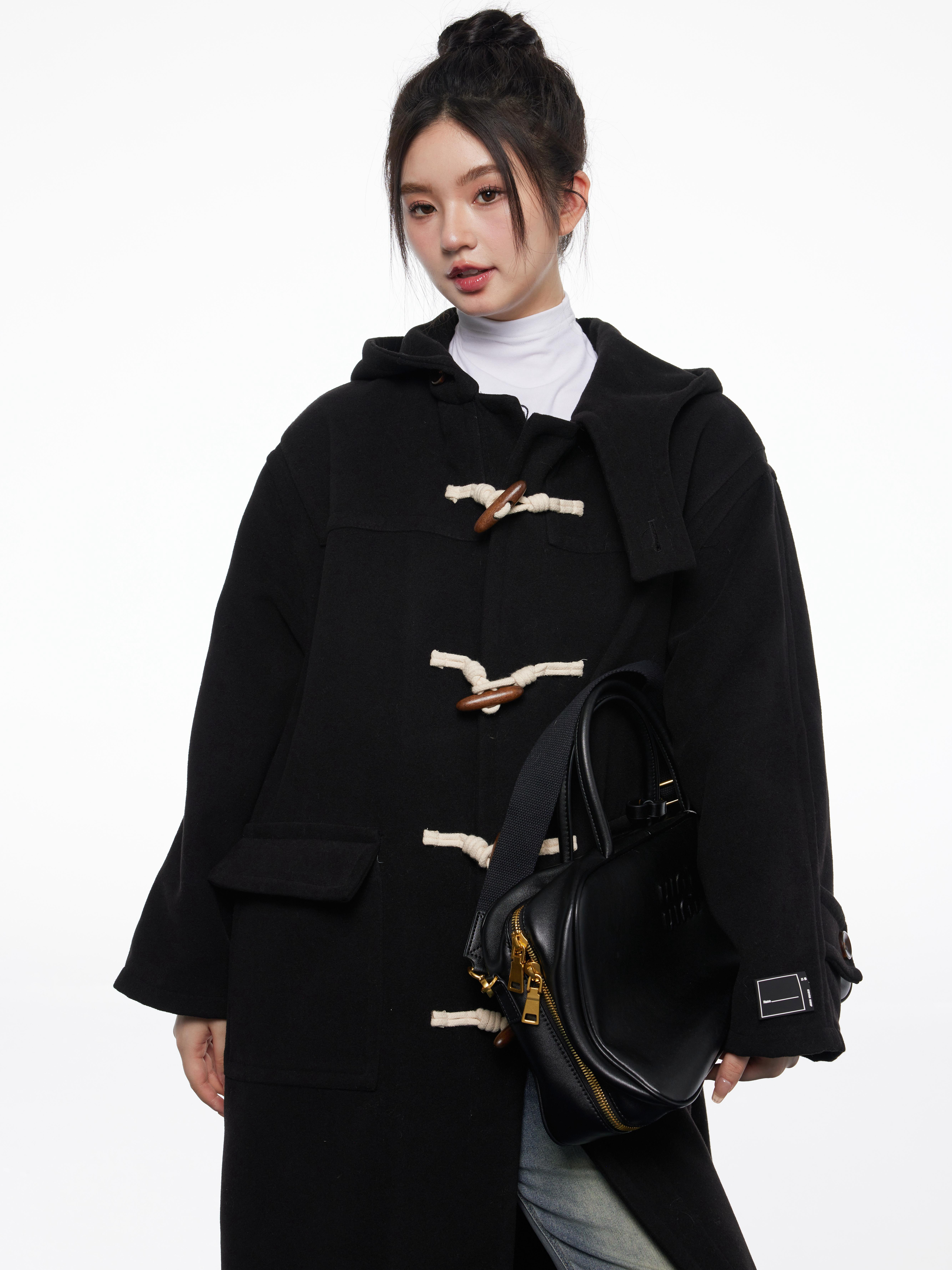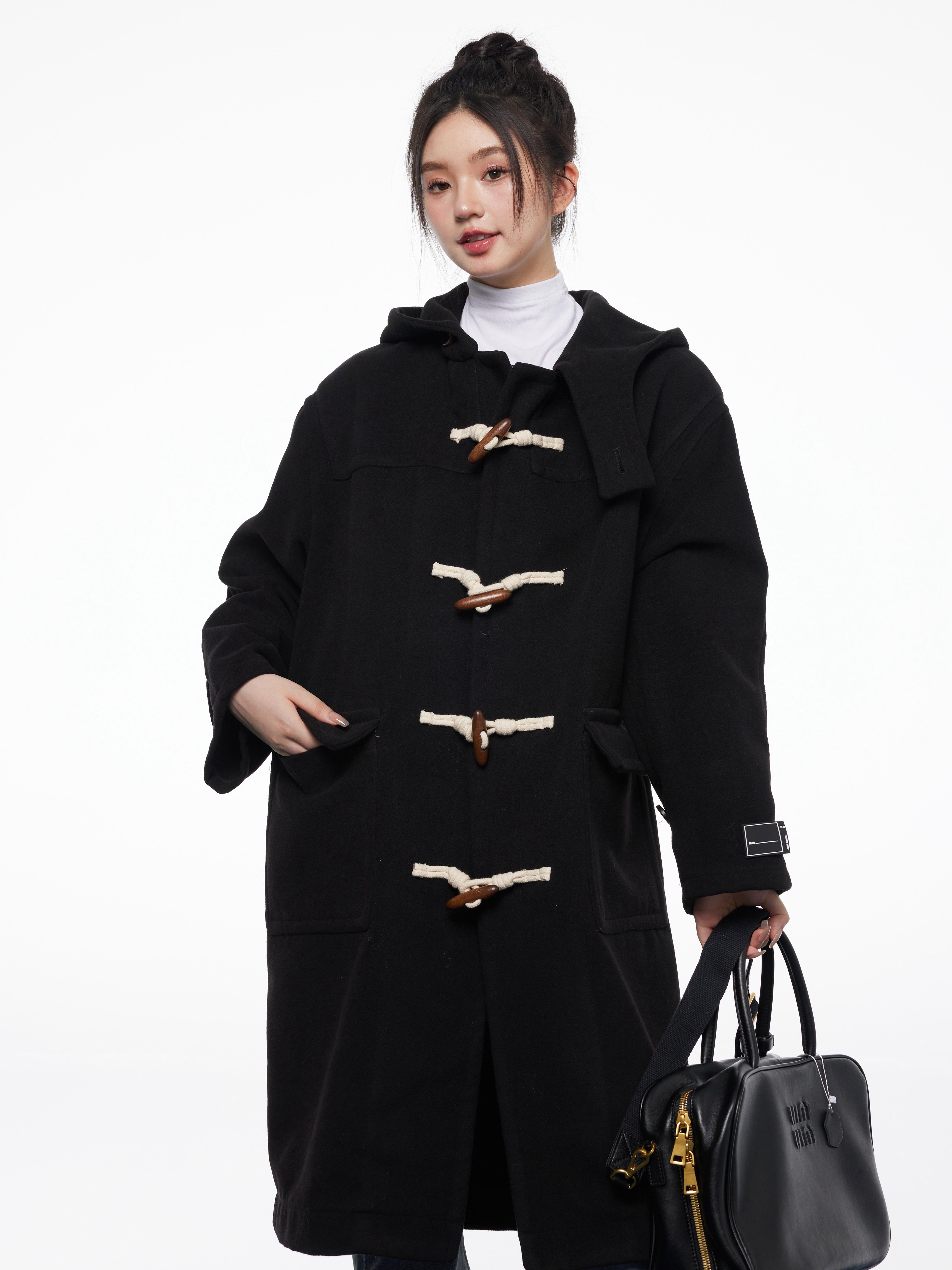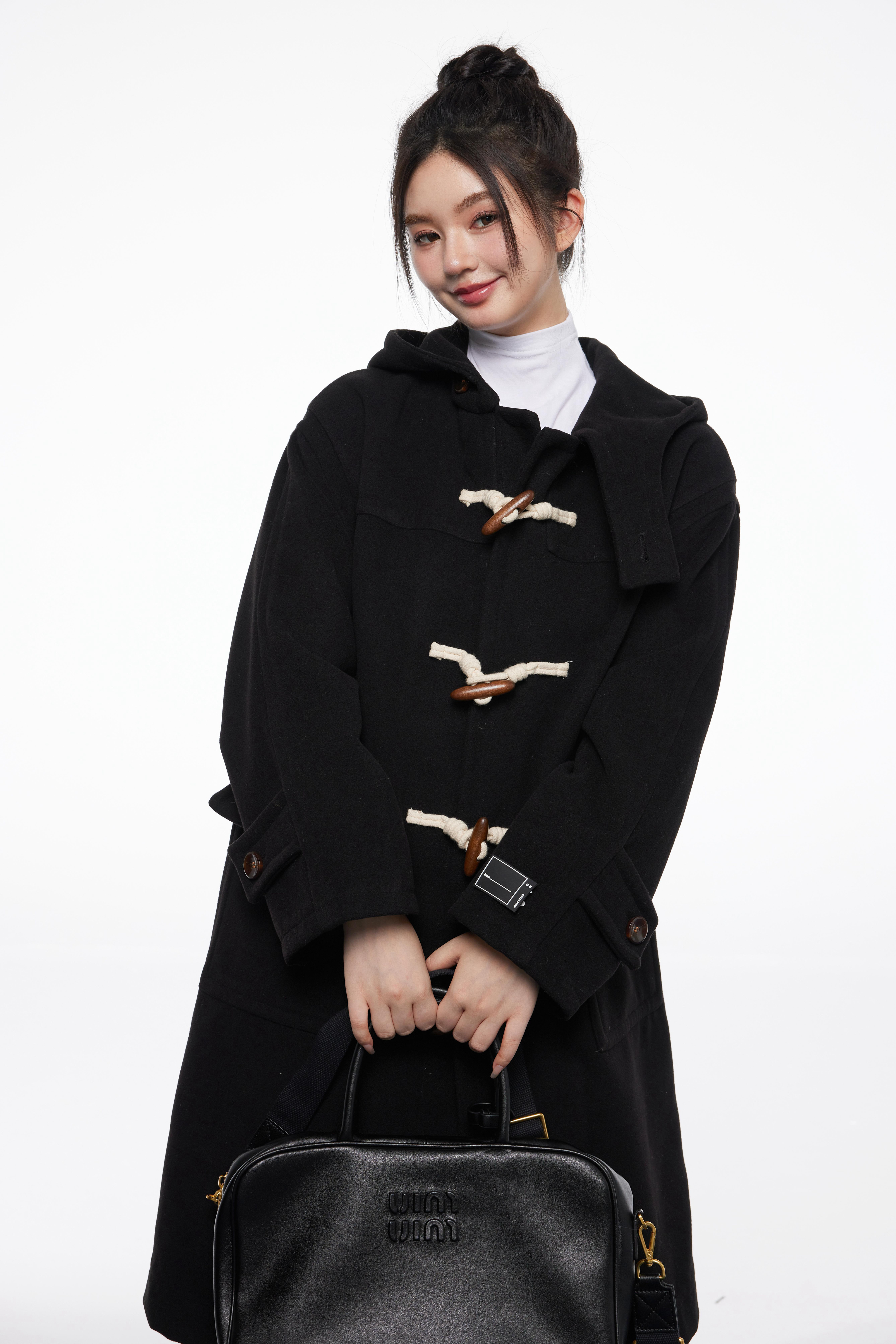ELEWEN SLEEP Fall black buffalo horn buckle gross not even cap long style lady loose college wind jacket-Taobao